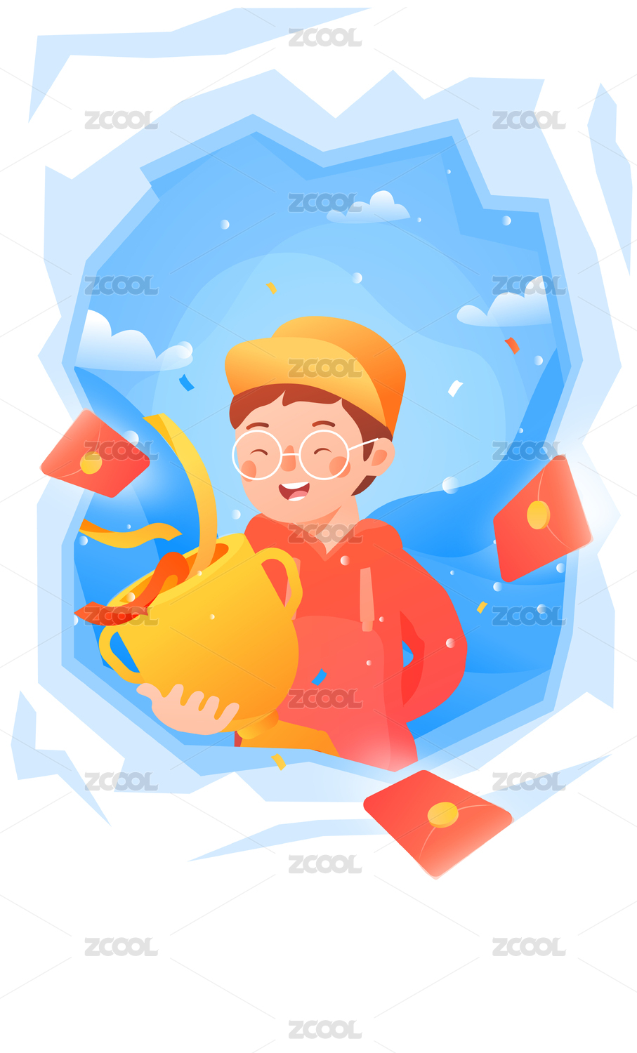 卡通冠軍年終獎業(yè)績達人紅包活動背景矢量插畫