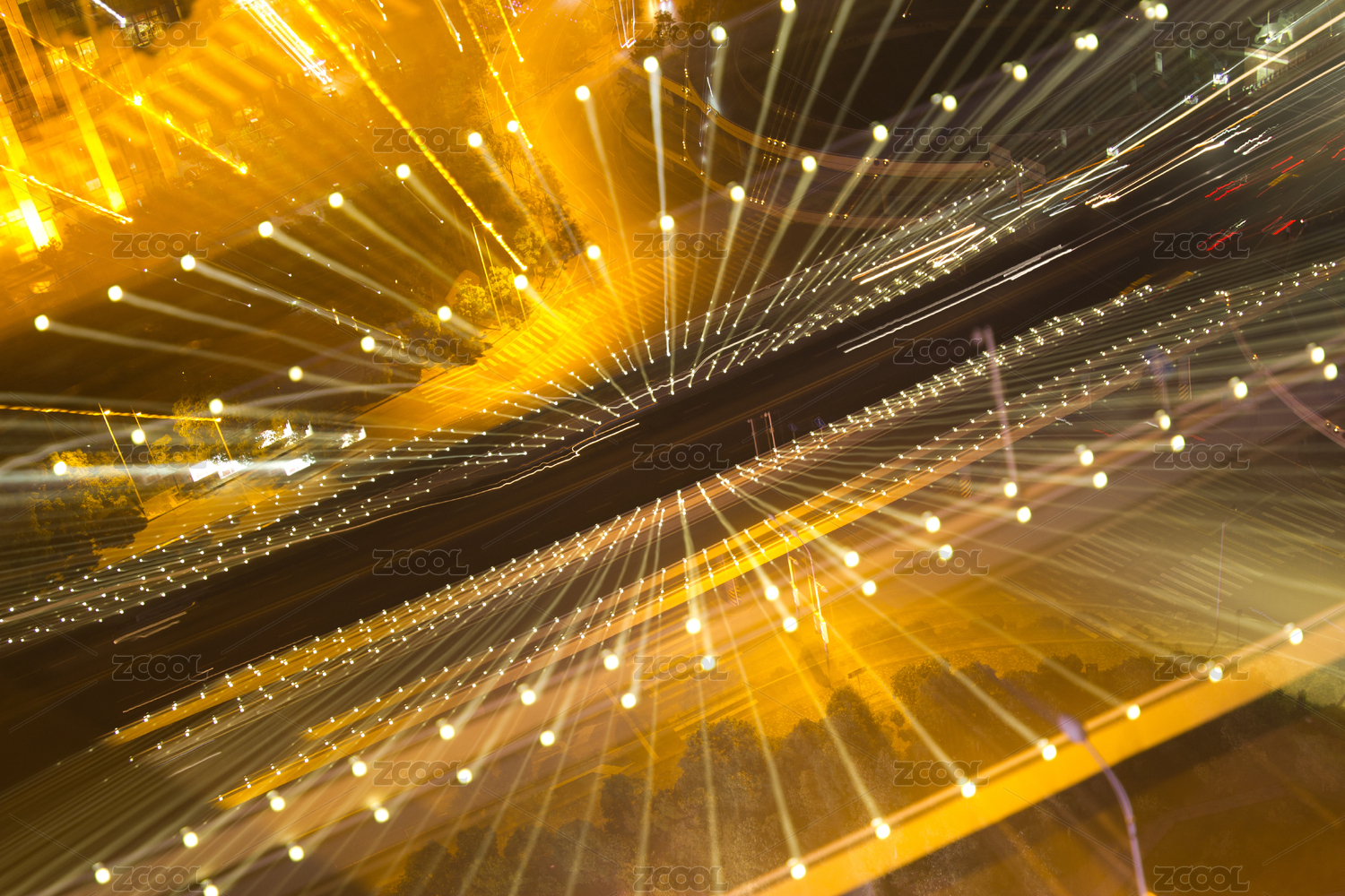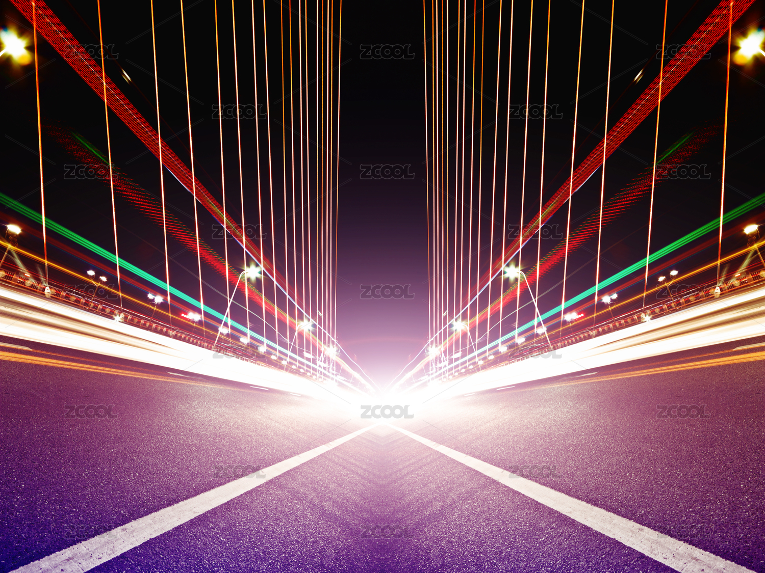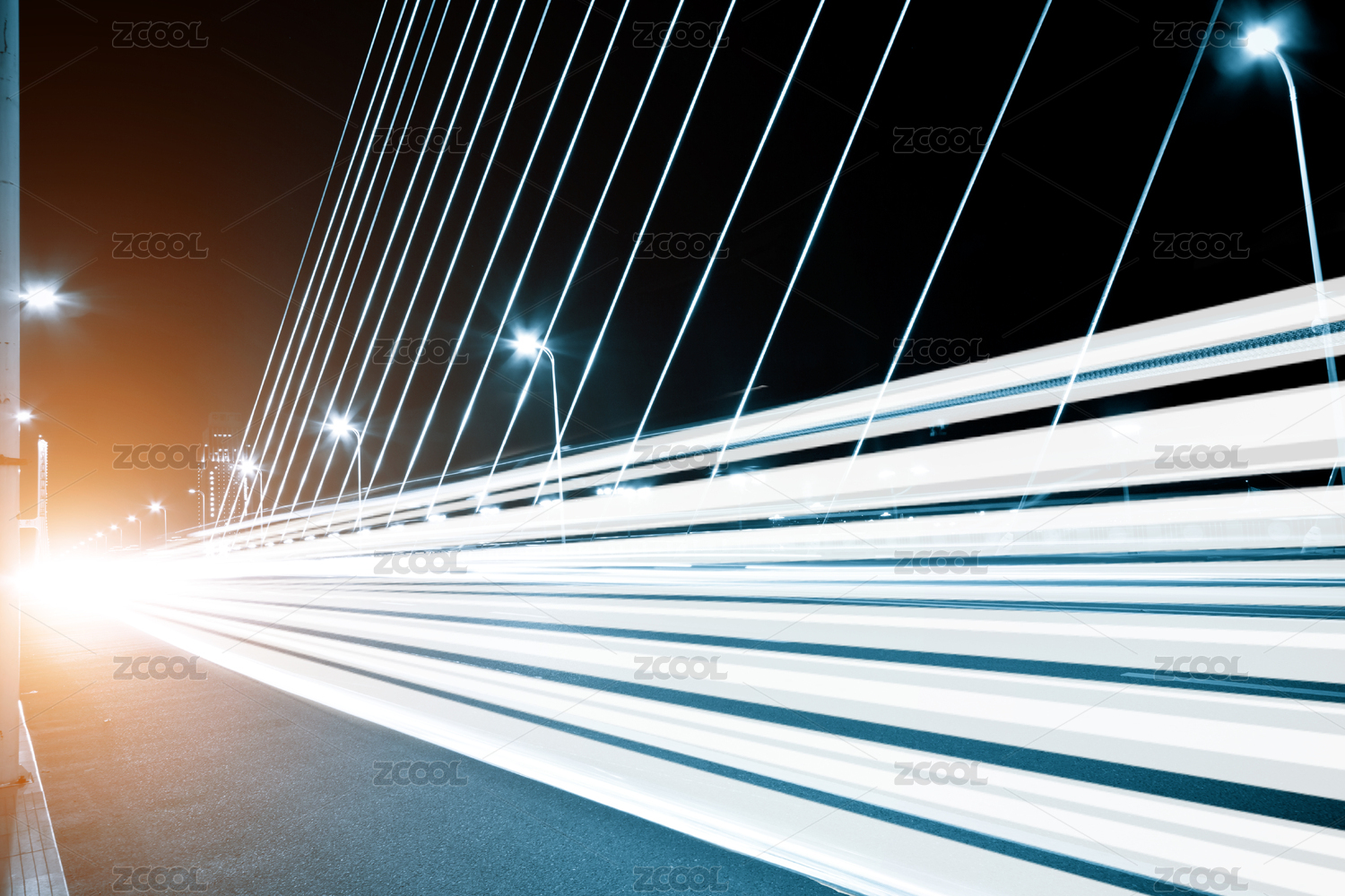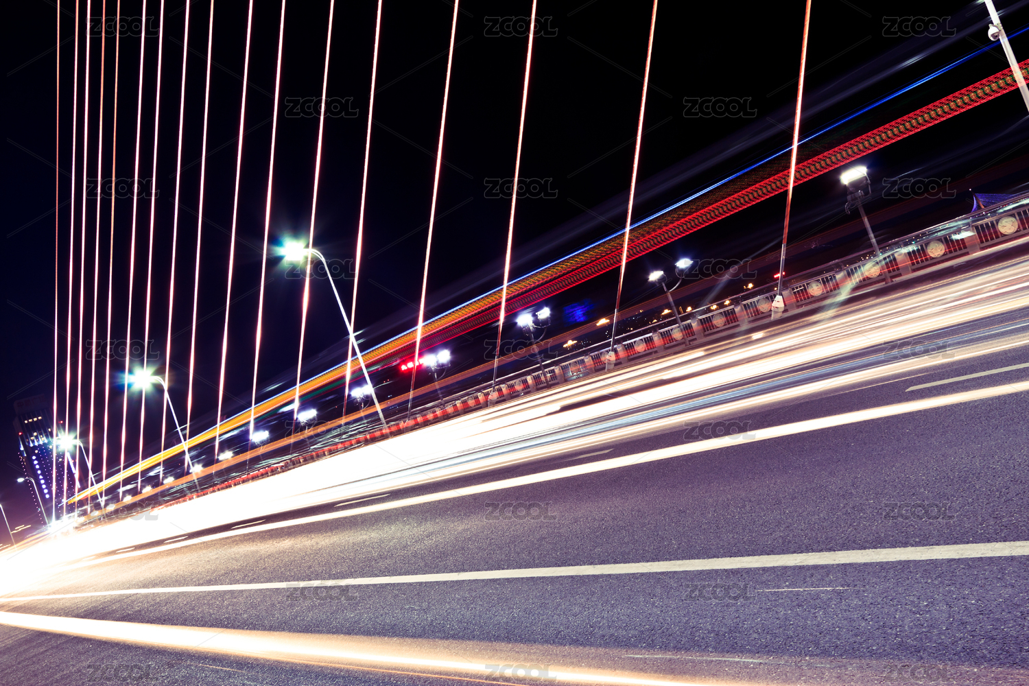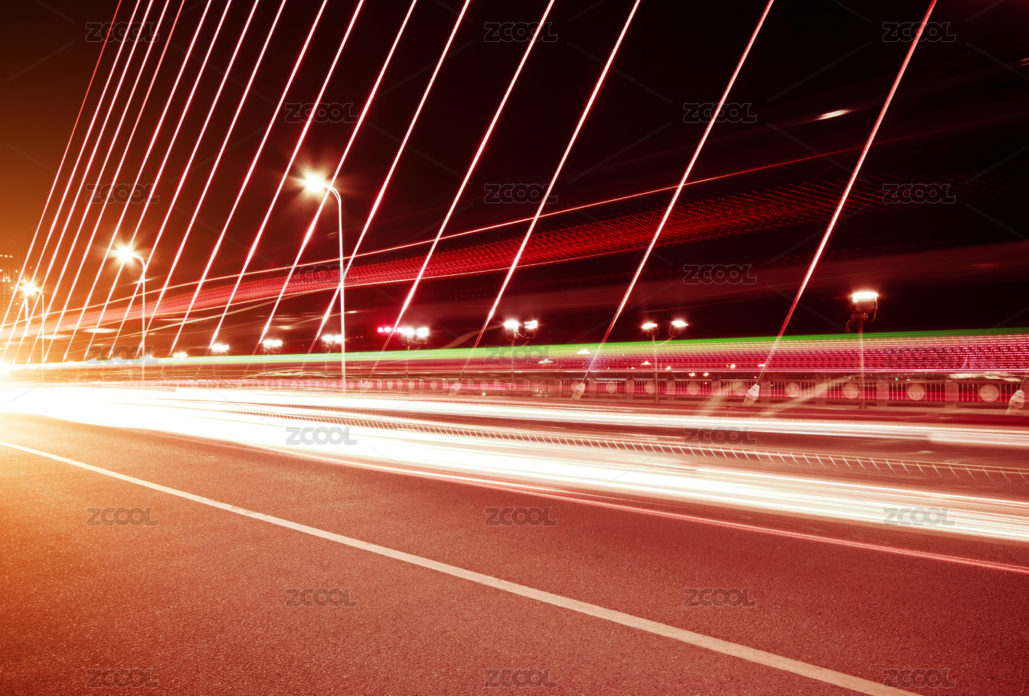 中國(guó)橋梁,飛馳的汽車尾燈形成的光的軌跡