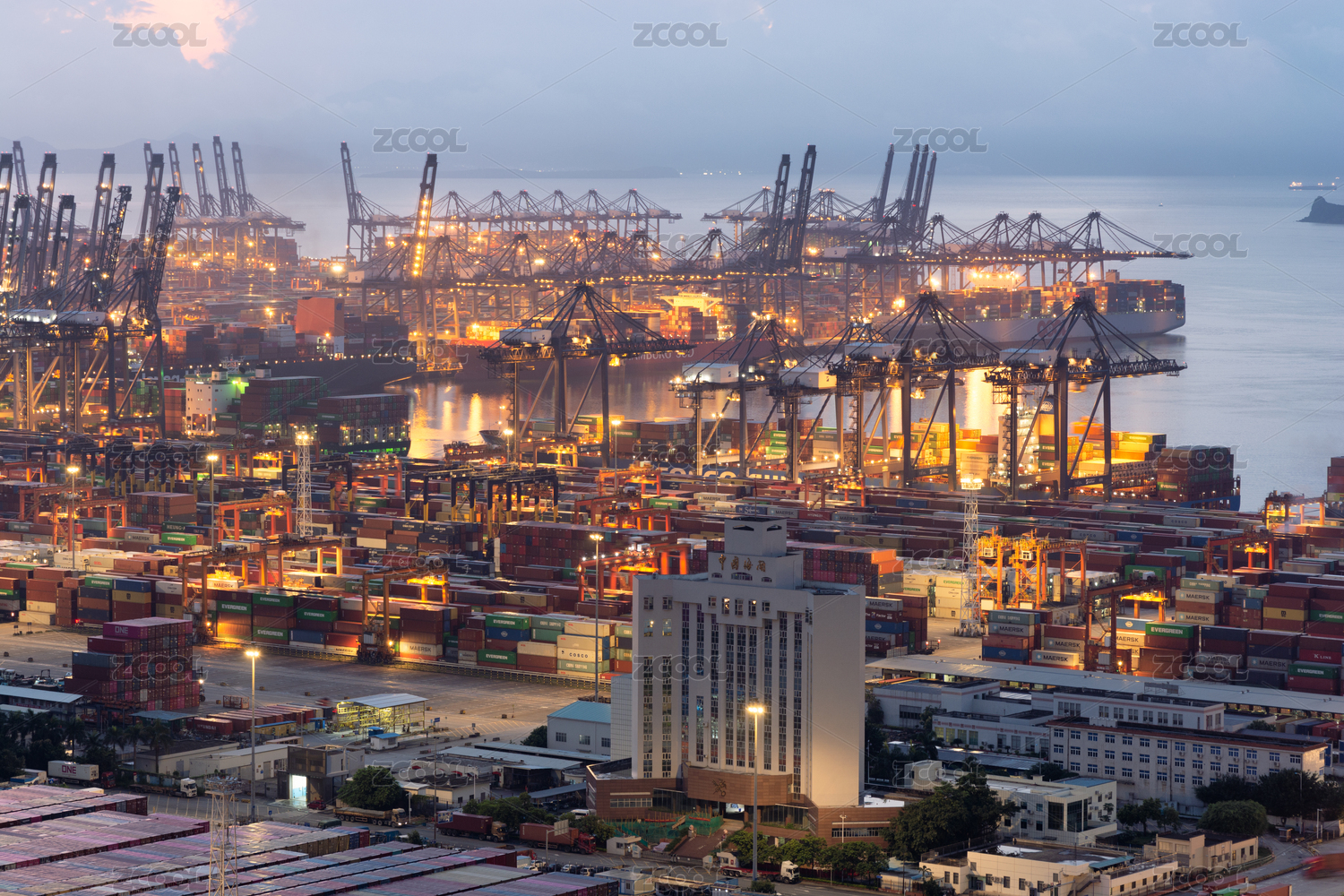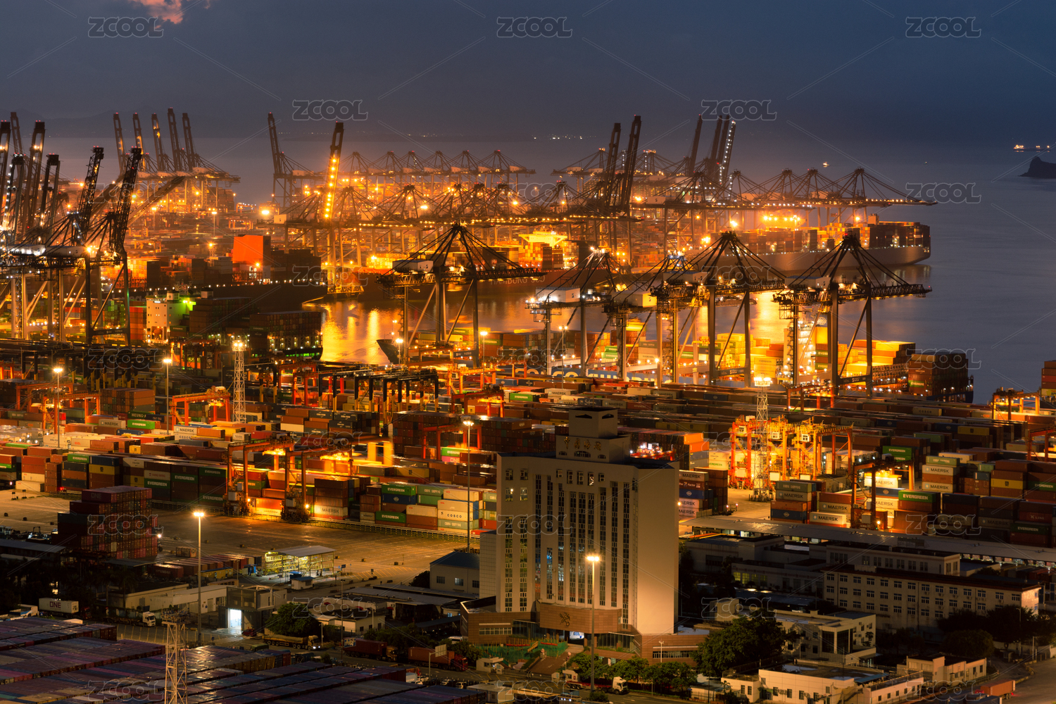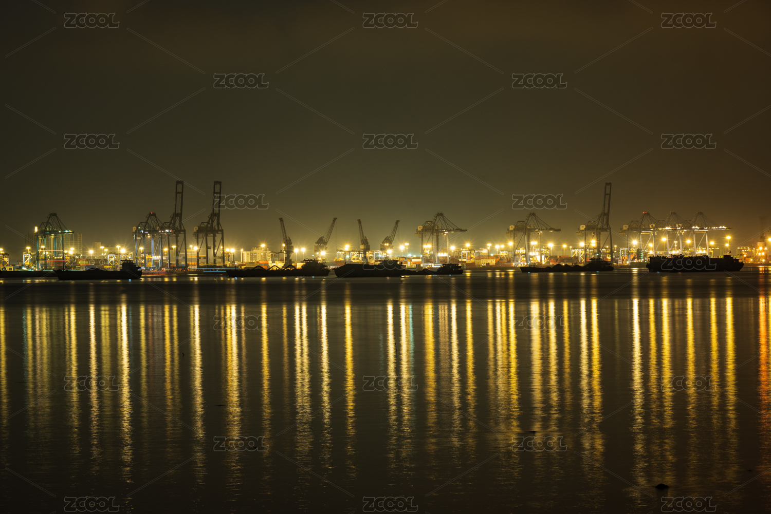 夜晚燈火通明的港口