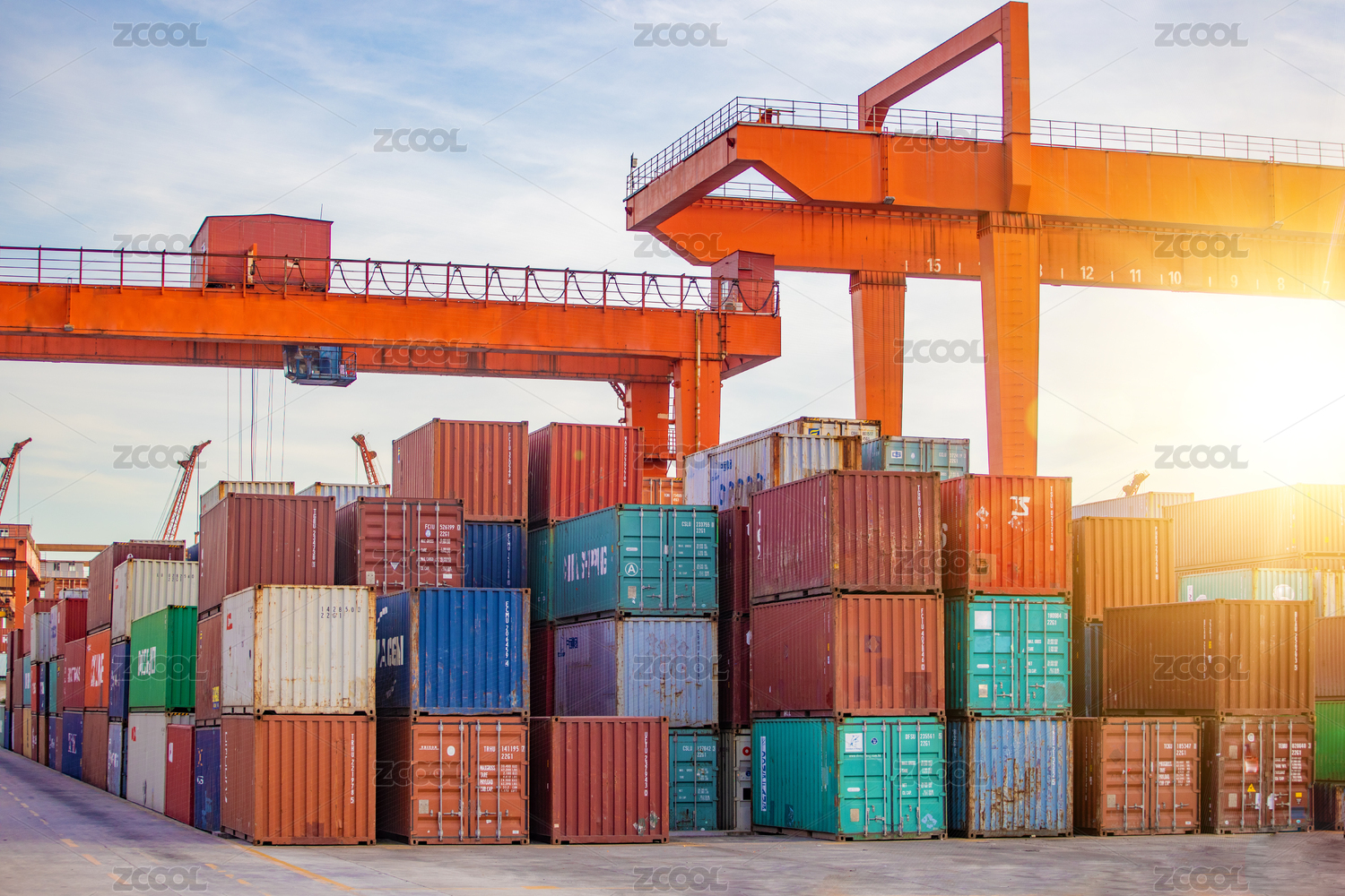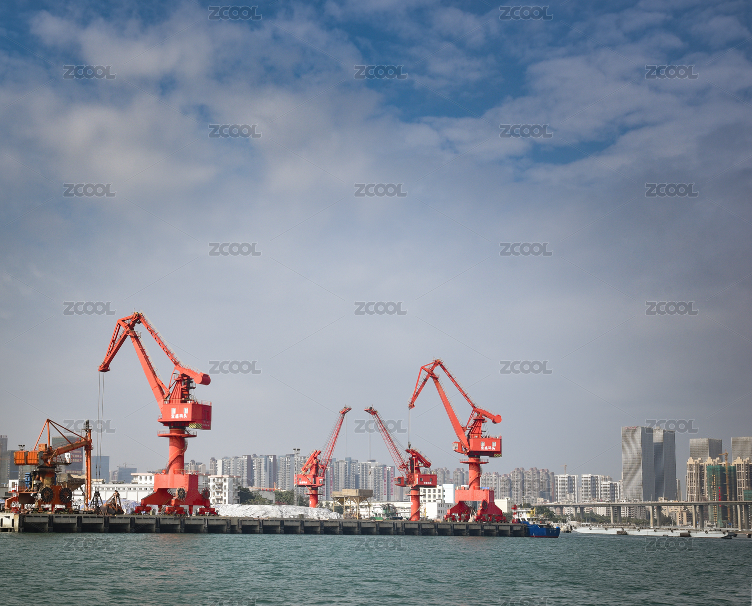 港口吊車,繁忙海港。