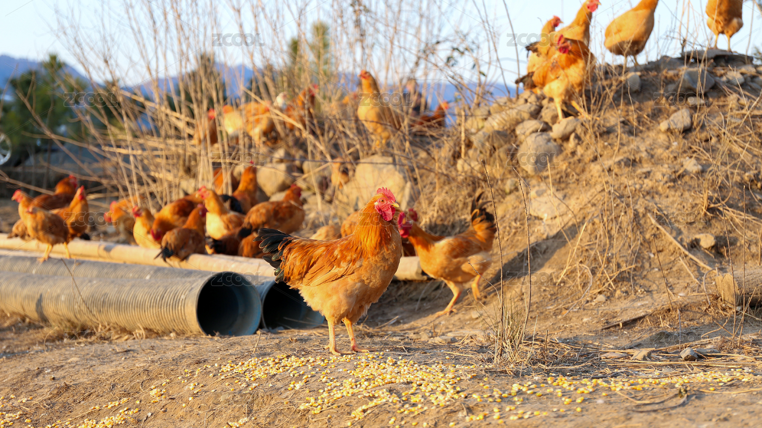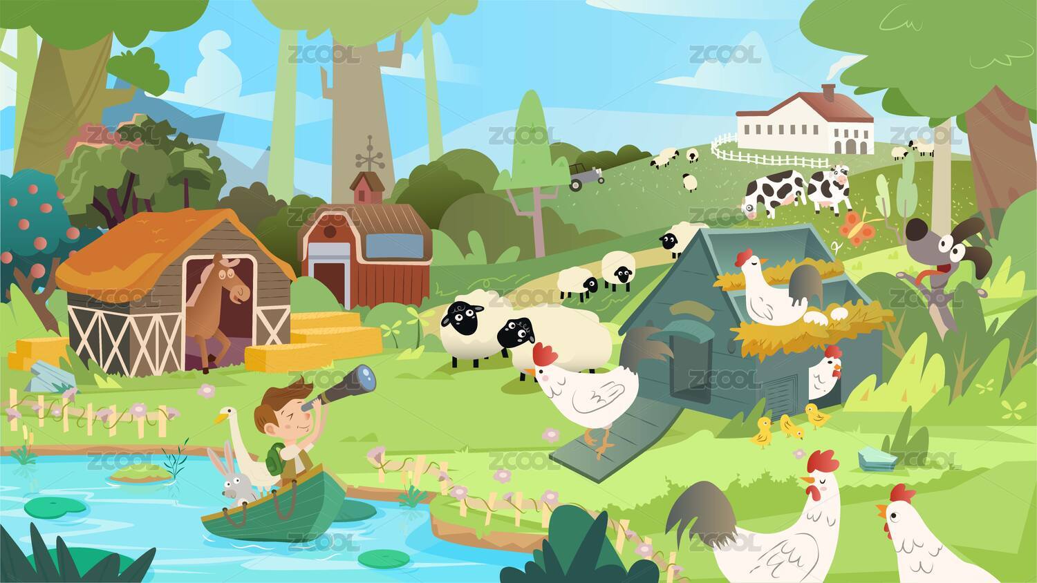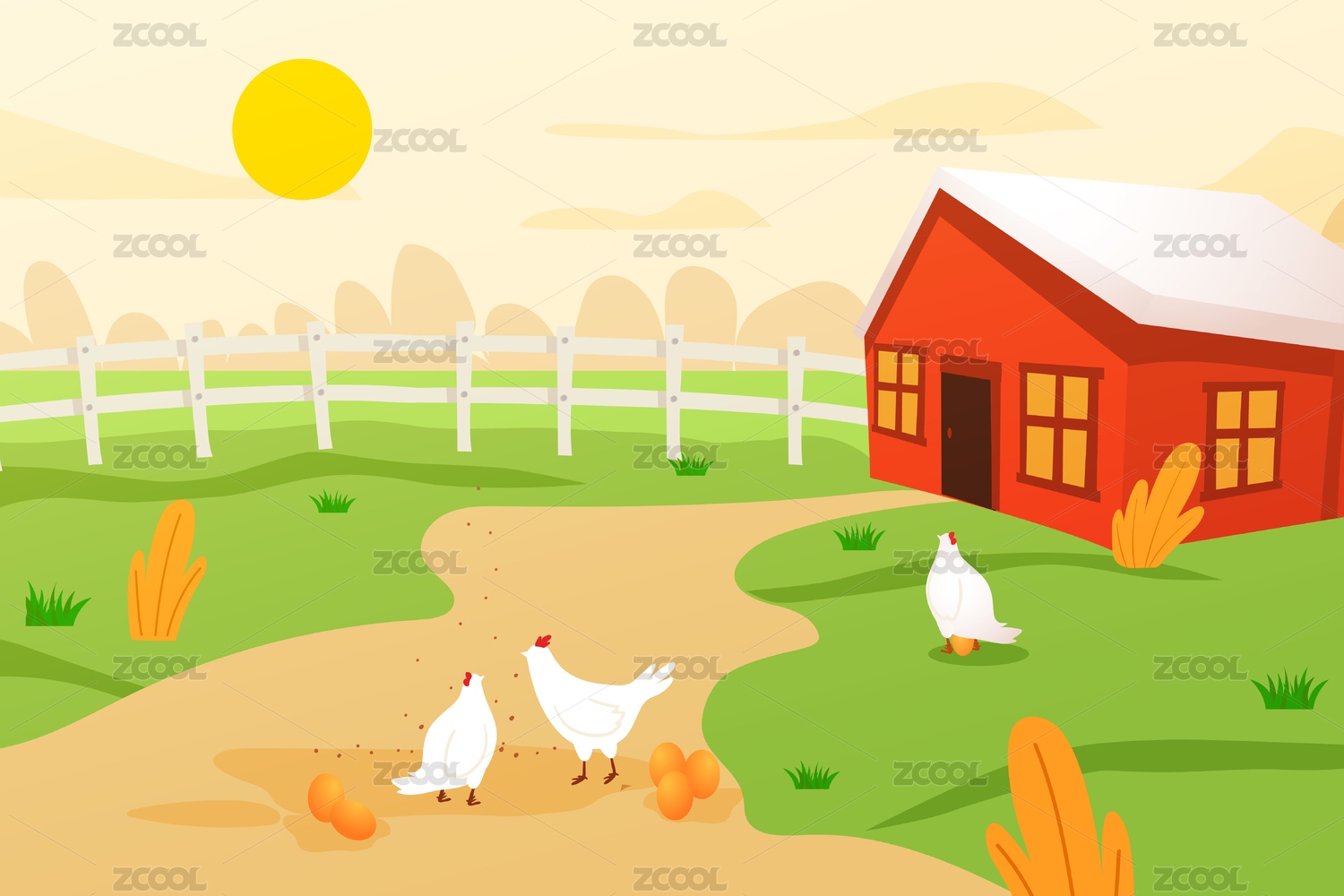 卡通農(nóng)場養(yǎng)雞風(fēng)景背景矢量插畫