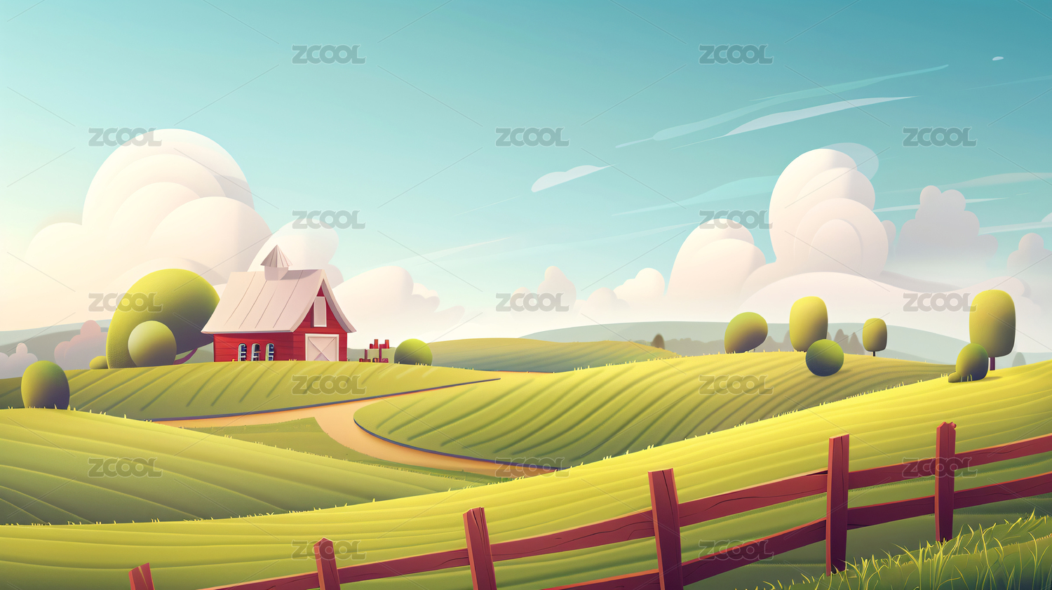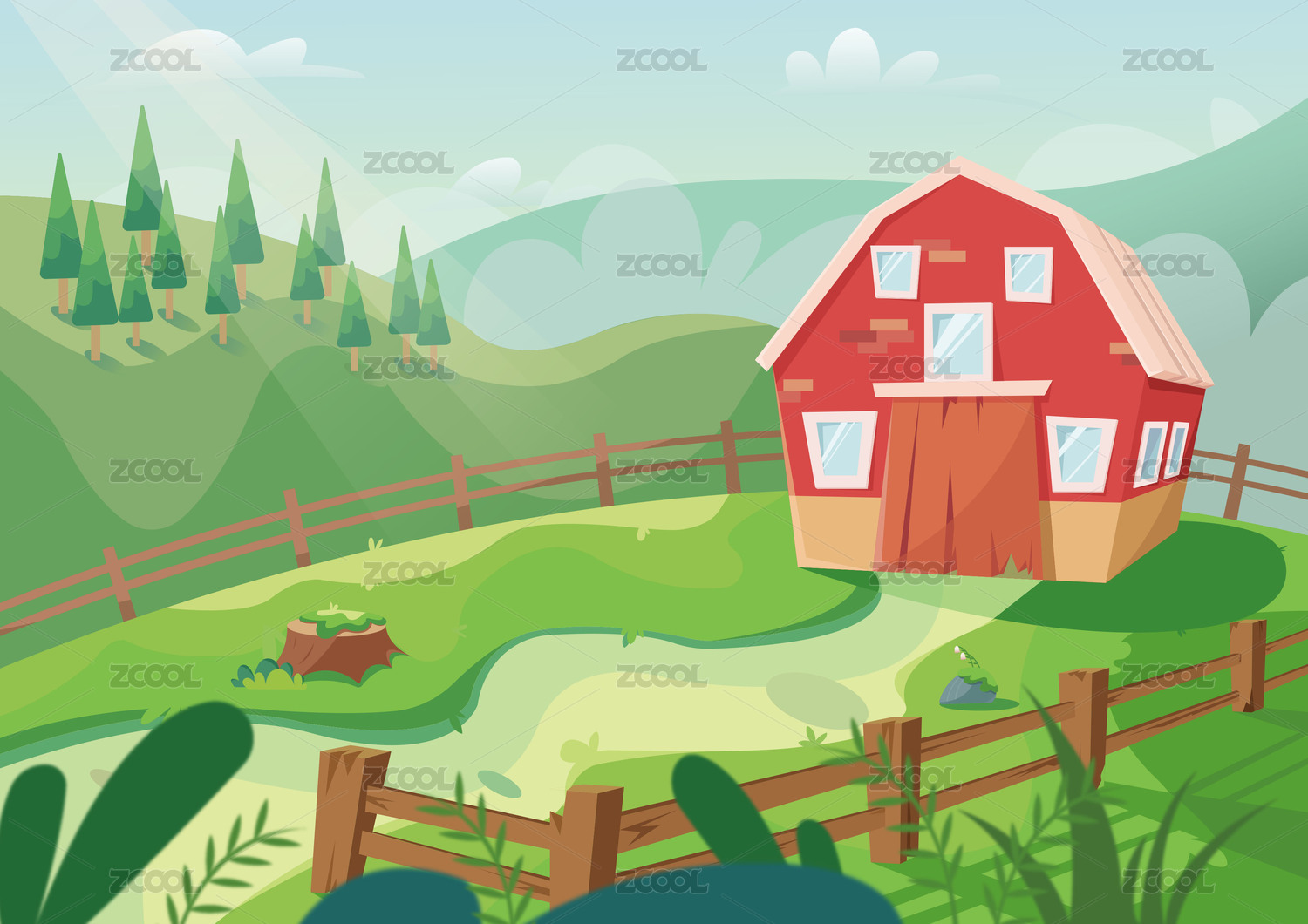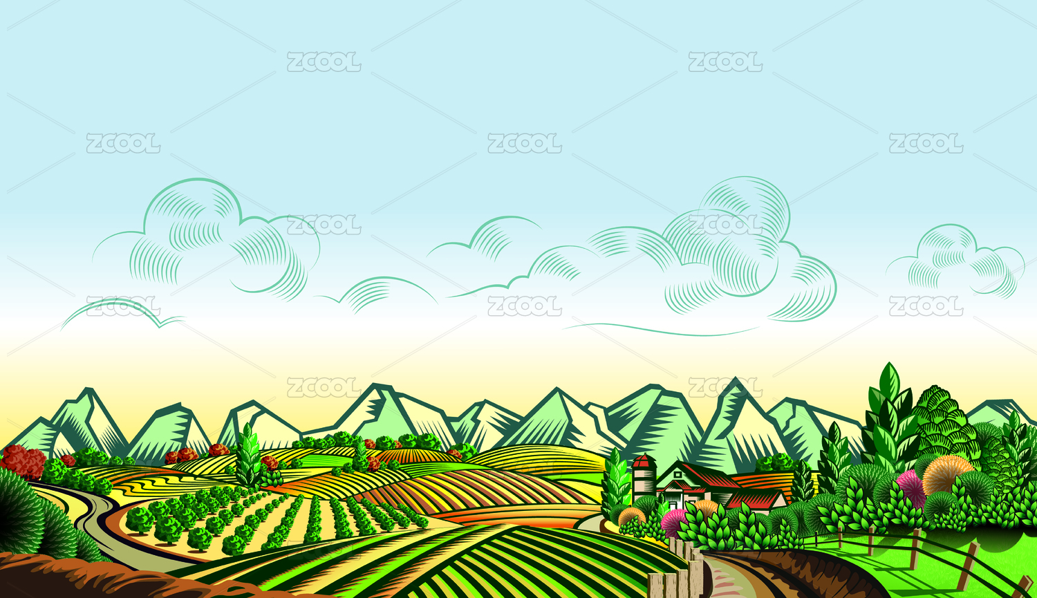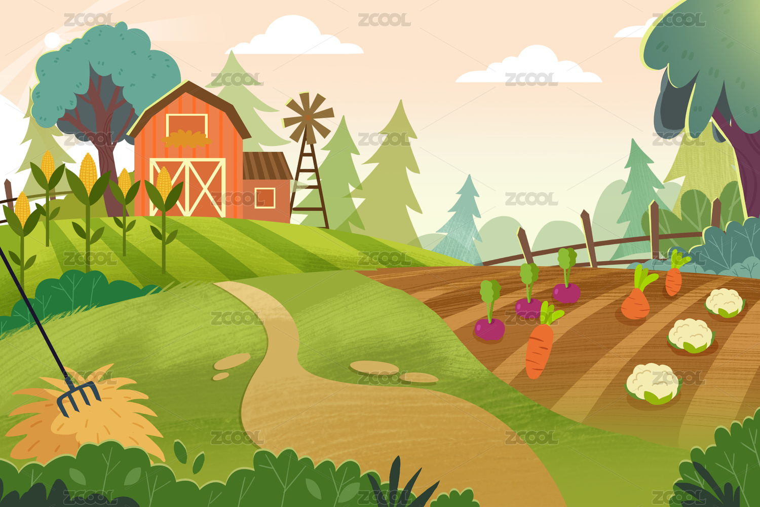 農(nóng)業(yè)農(nóng)場風(fēng)光插畫