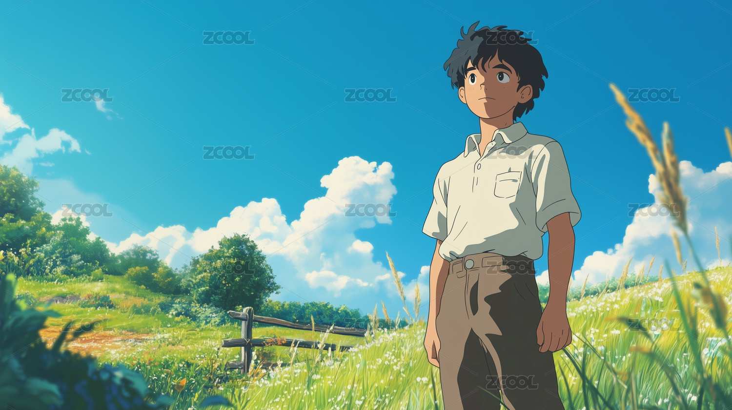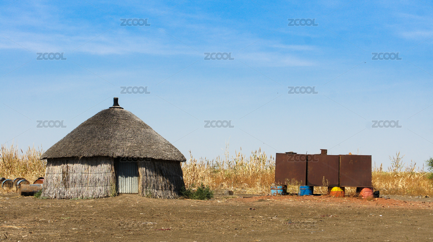 農(nóng)場里父親干完活看著孩子在門口玩耍