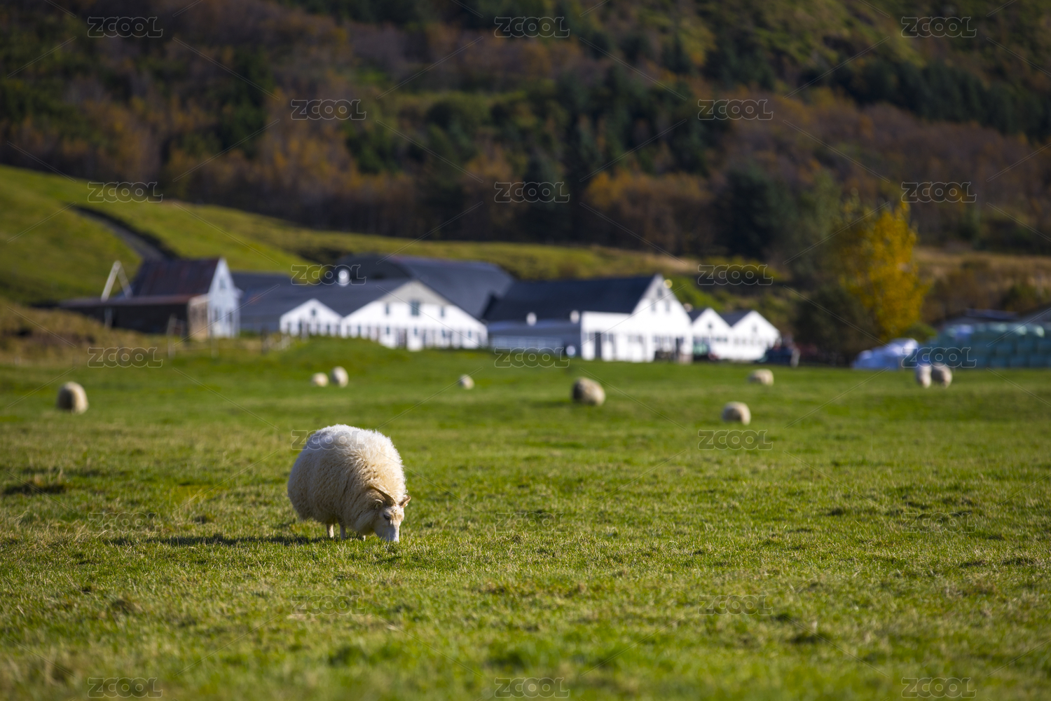 在群山云霧的山頂上有一座有柵欄的牧場農(nóng)場