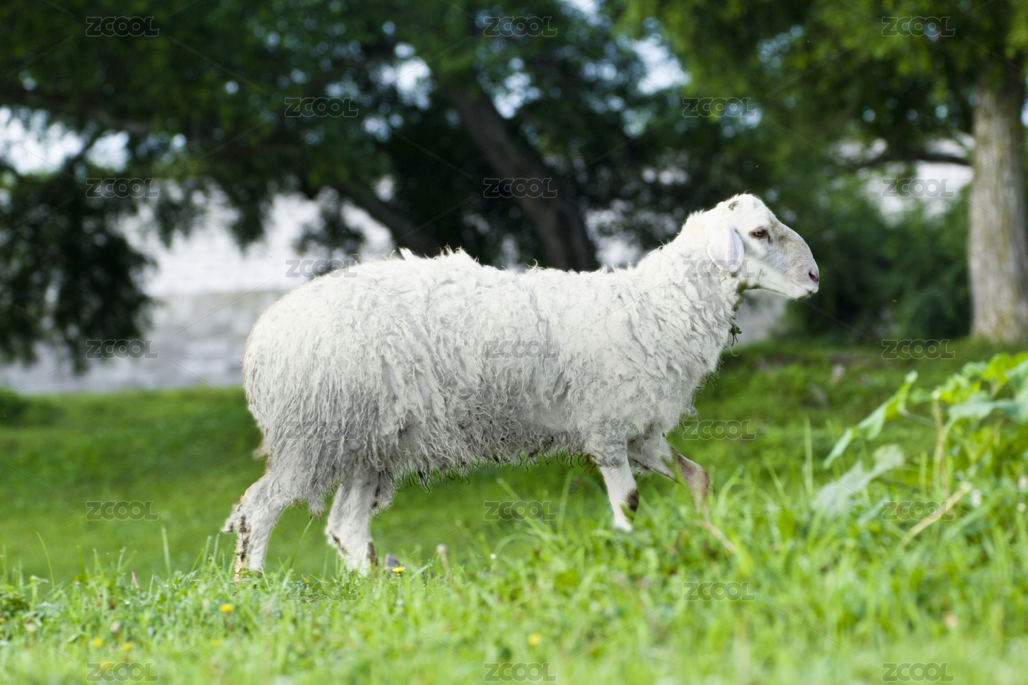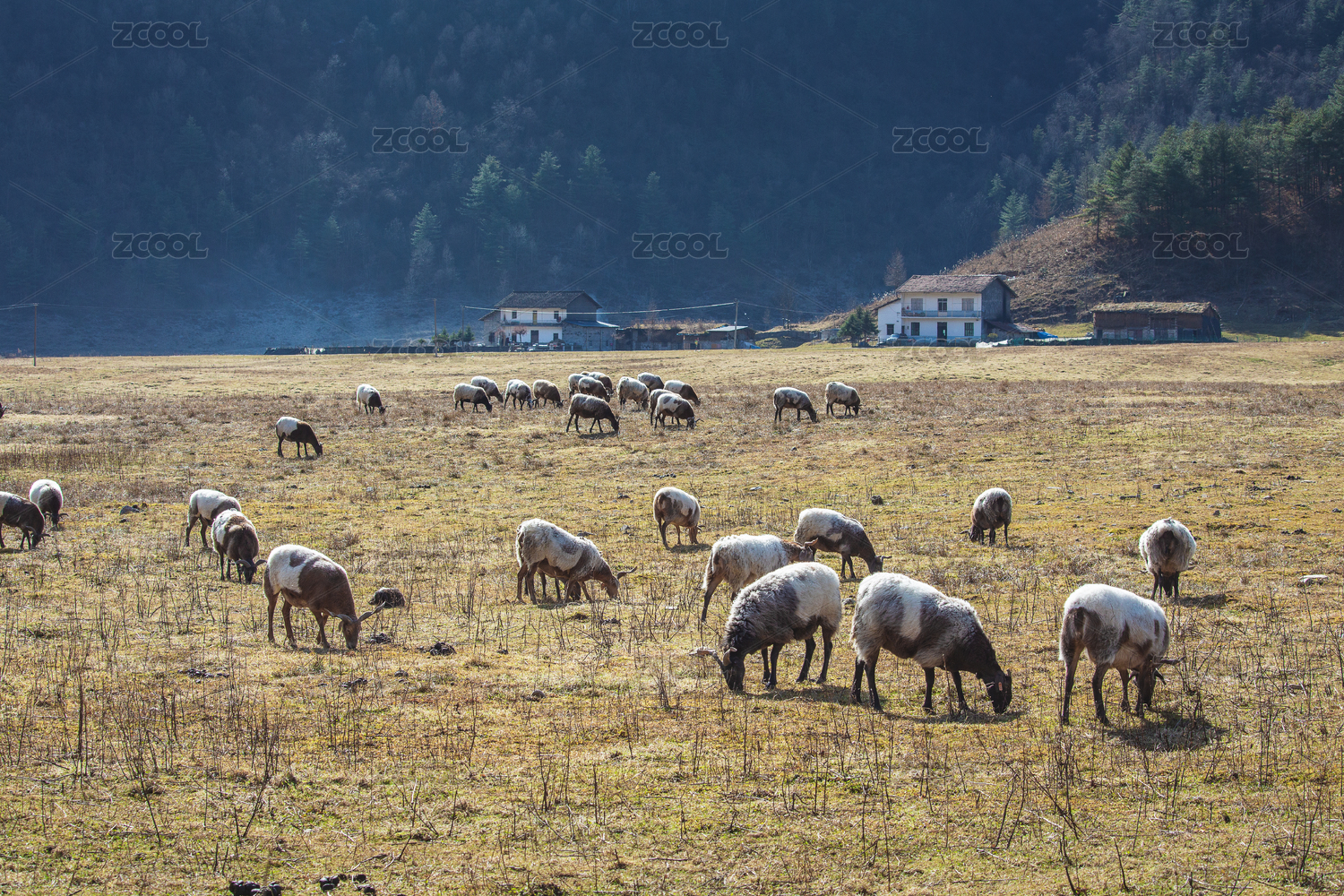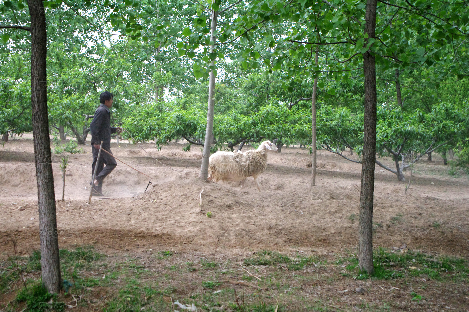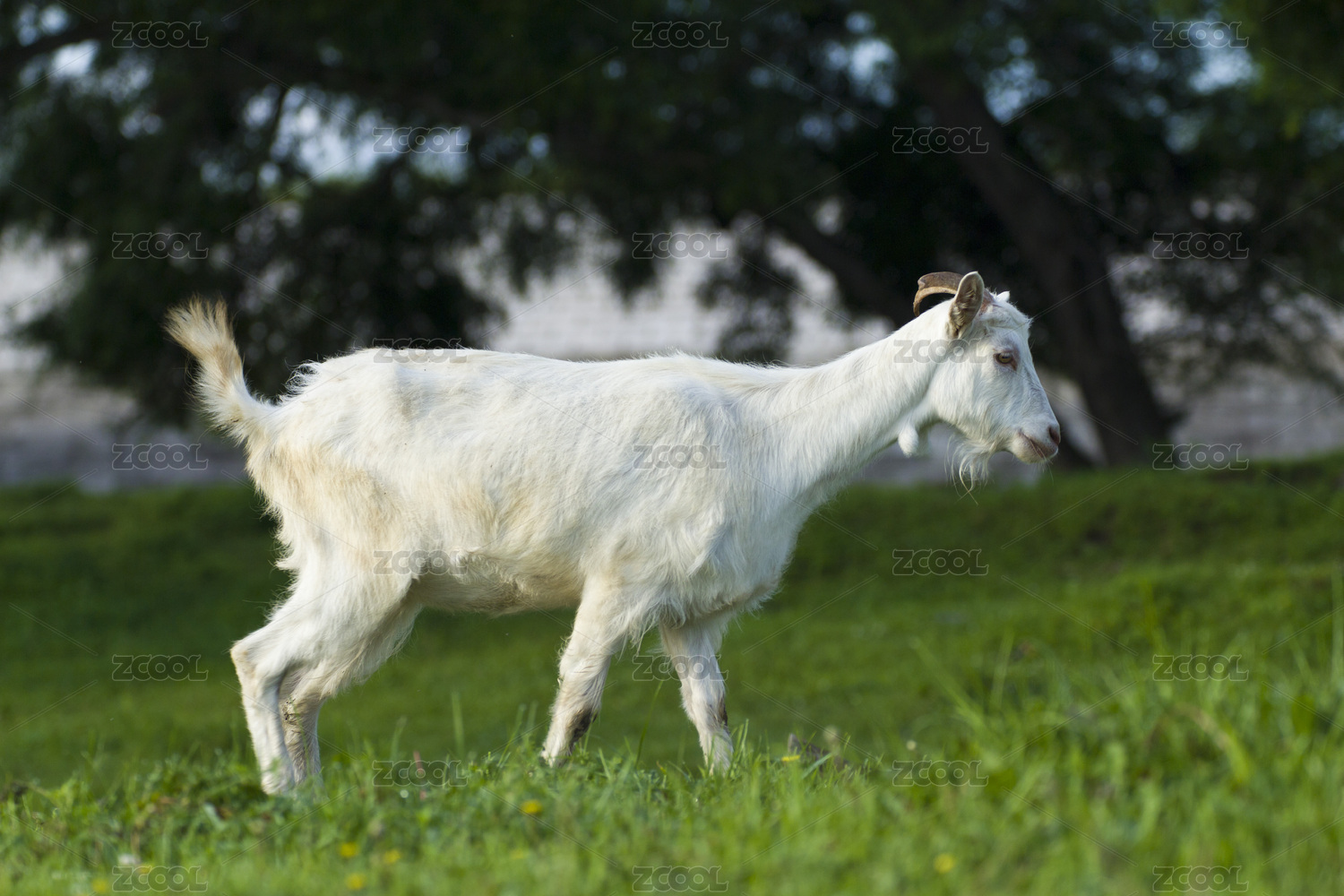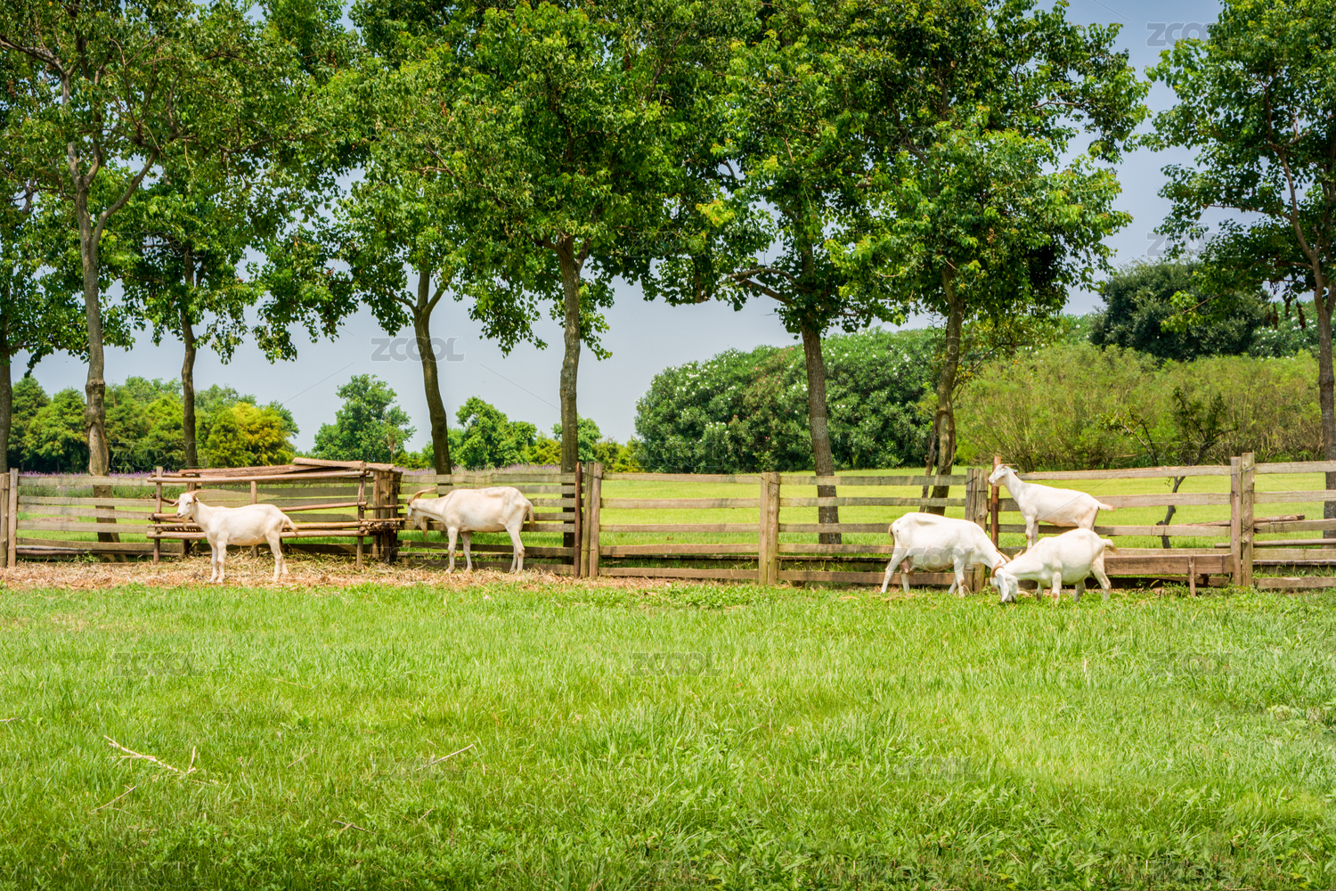 戶外草地上圈養(yǎng)的山羊