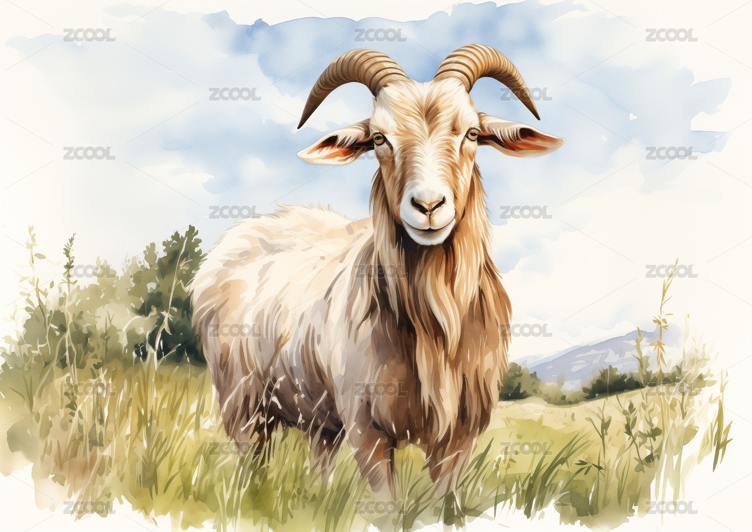 3D立體山羊卡通動物插圖