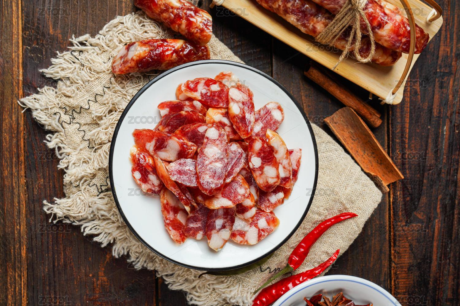 中國(guó)四川傳統(tǒng)風(fēng)味麻辣可口的臘腸