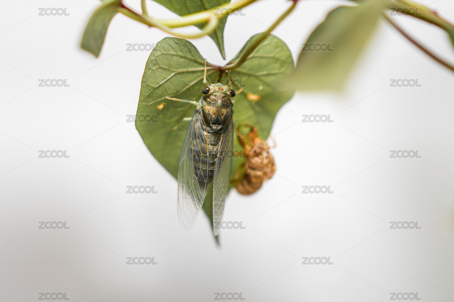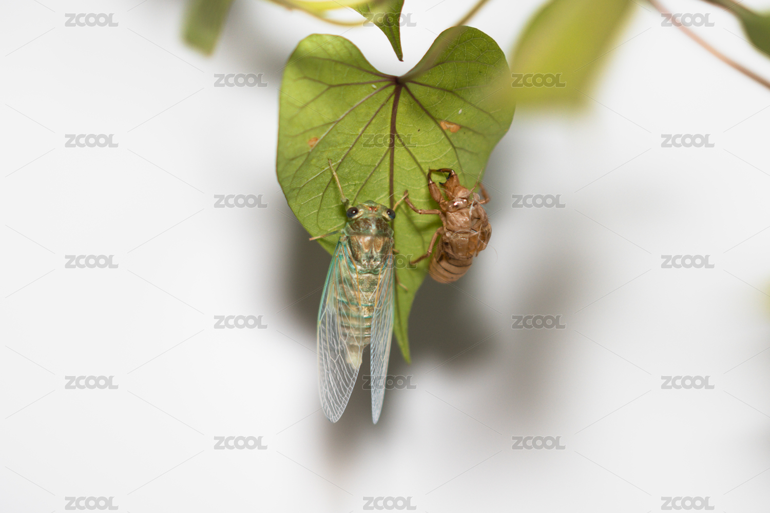 金蟬脫殼知了猴在樹葉上蛻殼