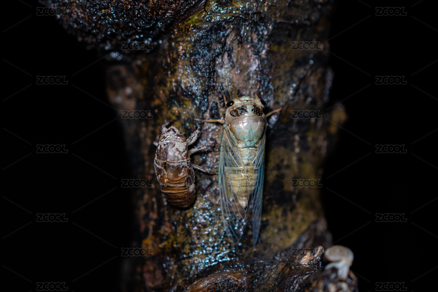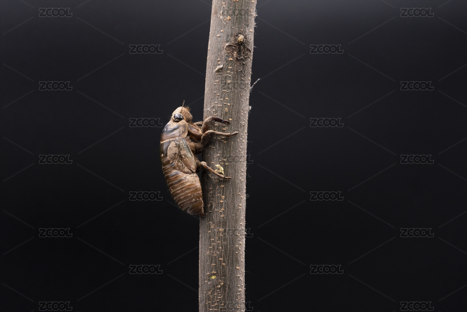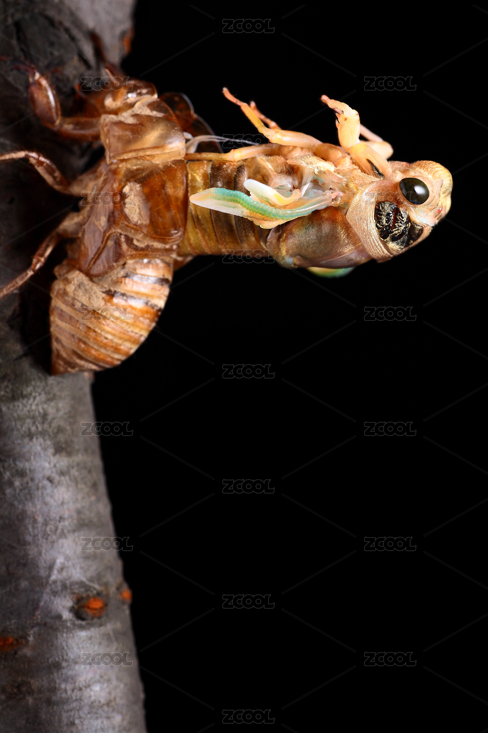 夏日里正在進(jìn)行蛻殼中的蟬