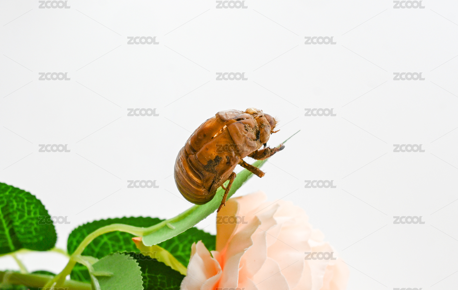 蟬若蟲蛻下的皮白底