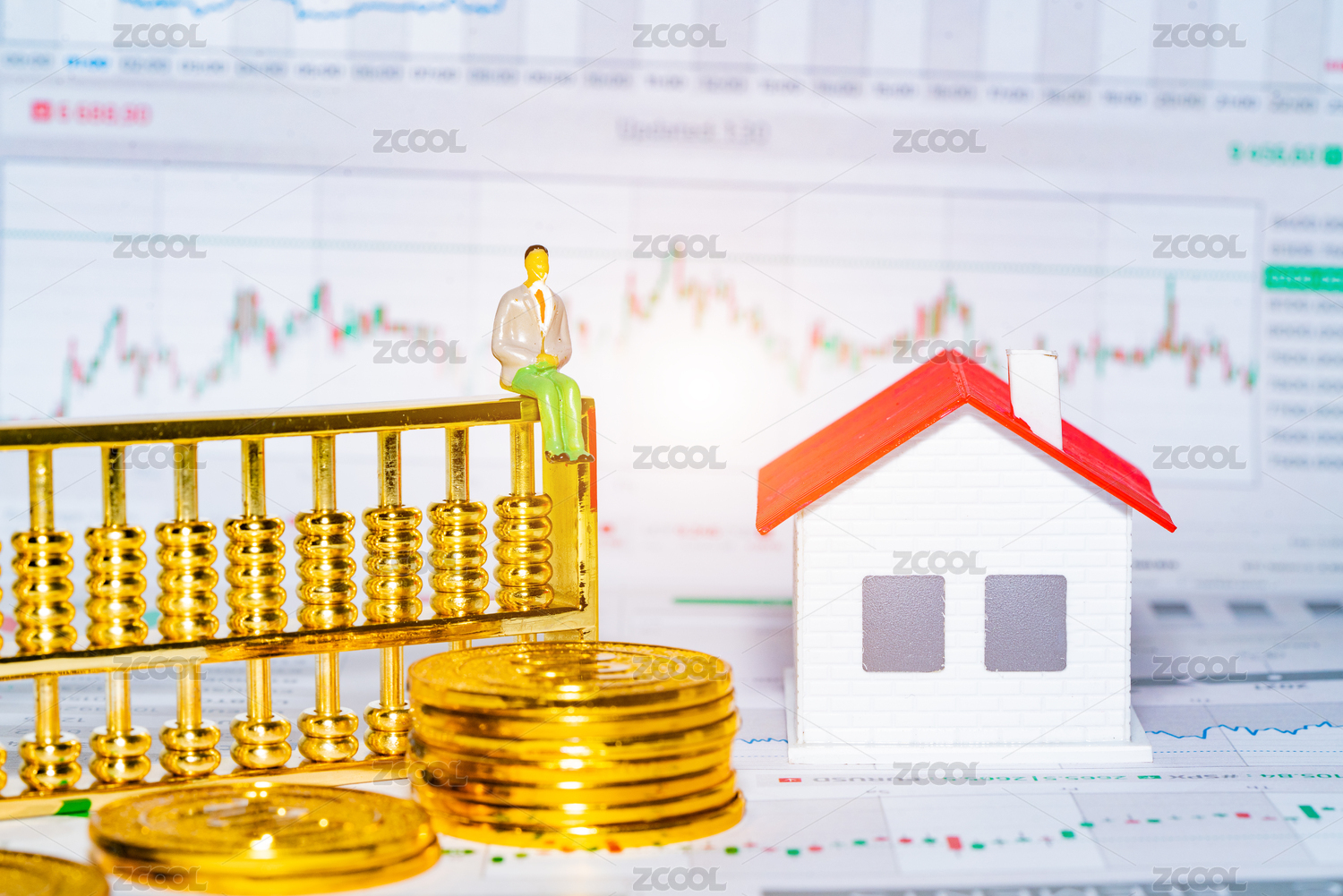房屋房子金幣房價房地產行情小人國微距圖表報表概念