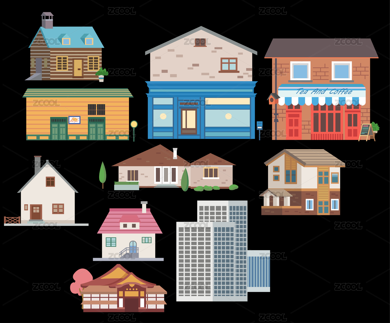 矢量扁平建筑房屋