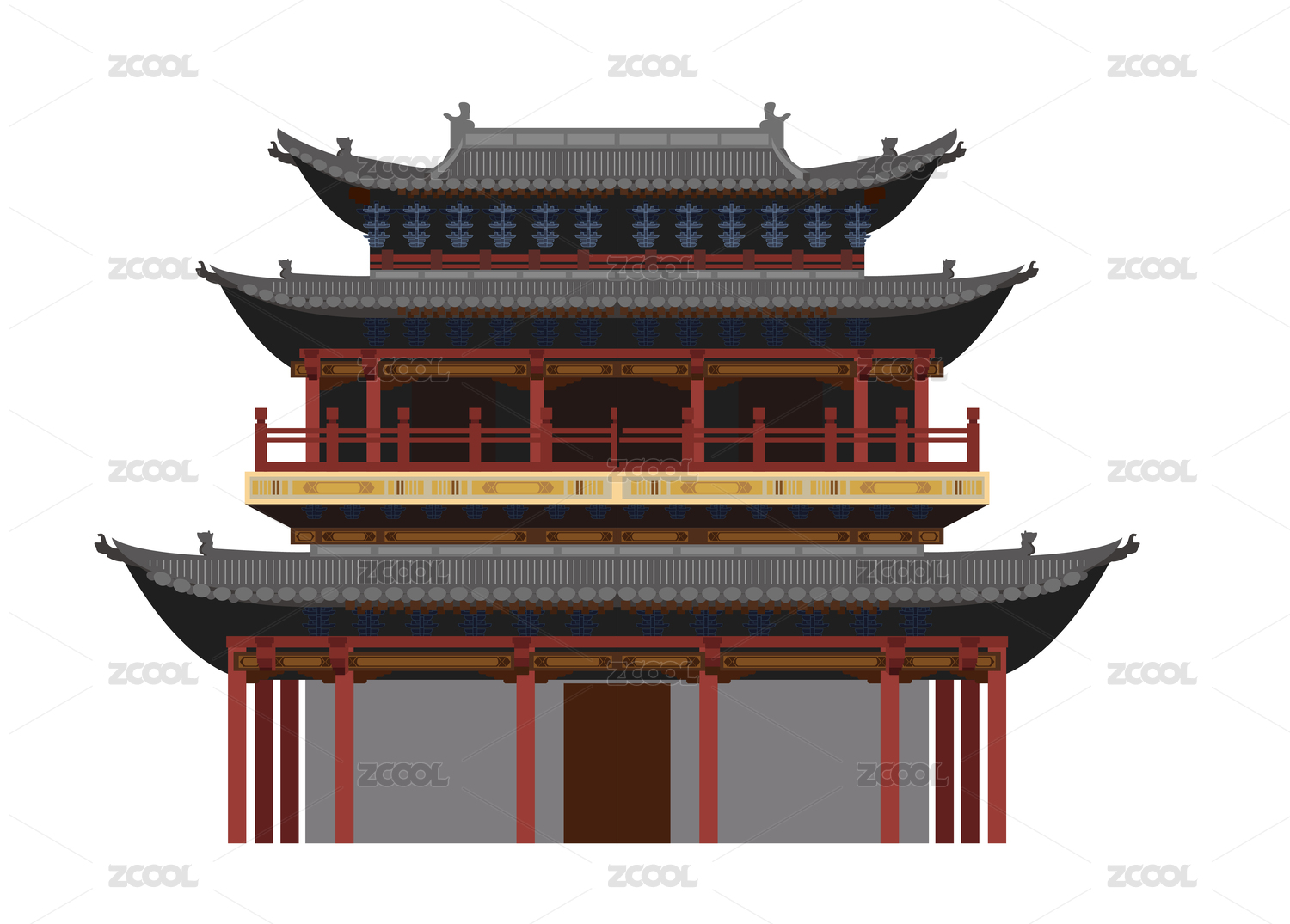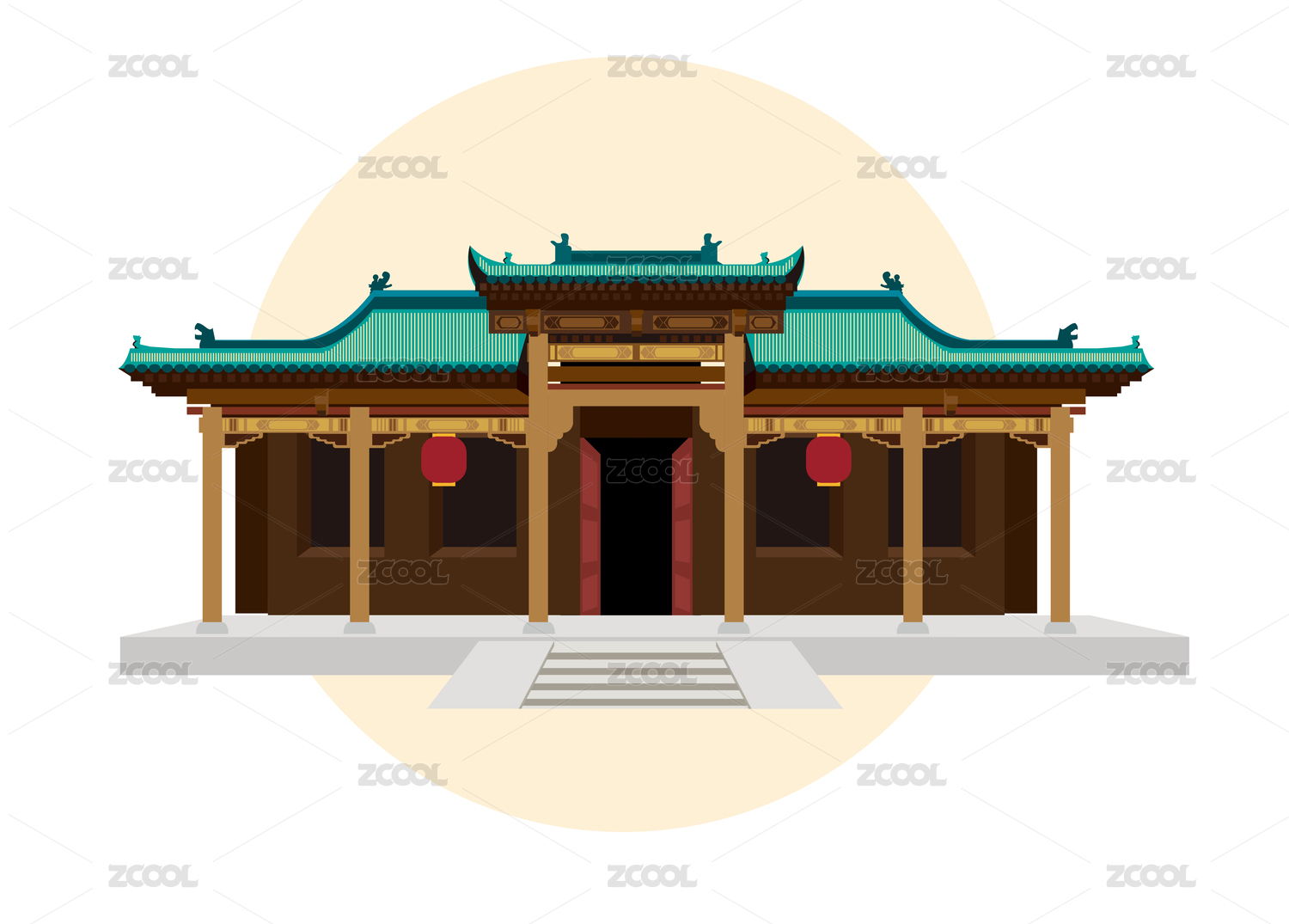 原創(chuàng)中式建筑年貨節(jié)卡通房屋矢量圖