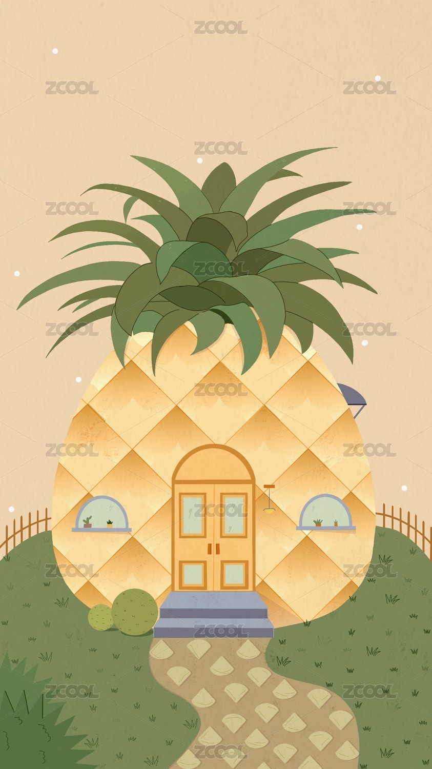 以黃色為主色調的菠蘿形房屋