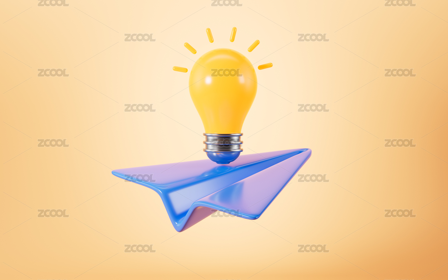 抽象燈泡和紙飛機3D渲染