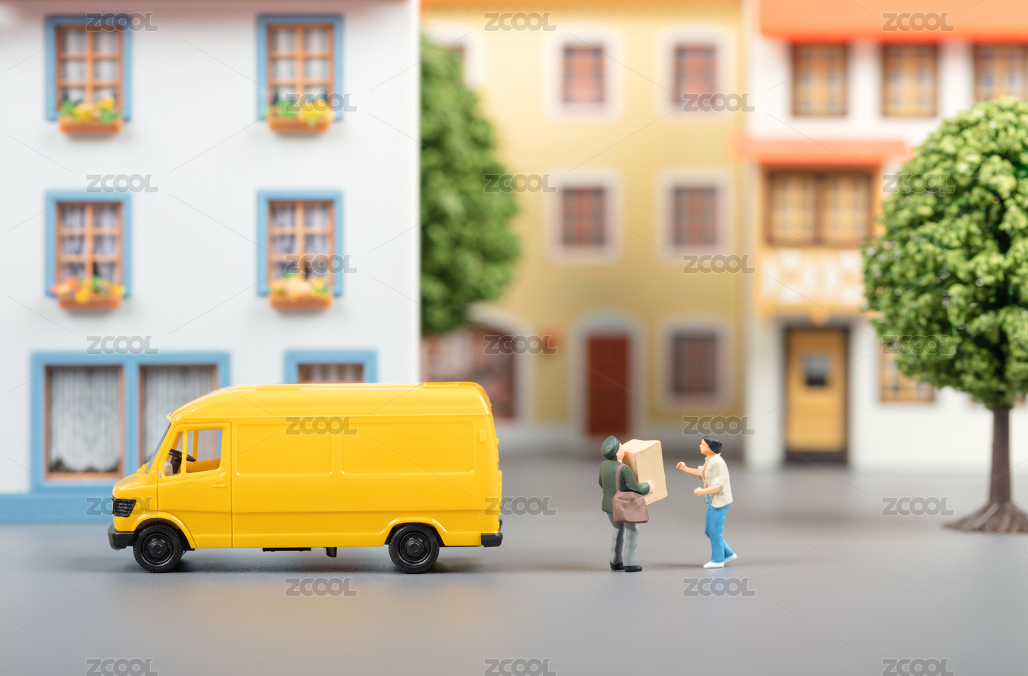 微縮創(chuàng)意小區(qū)住宅物流與派送包裹的快遞員