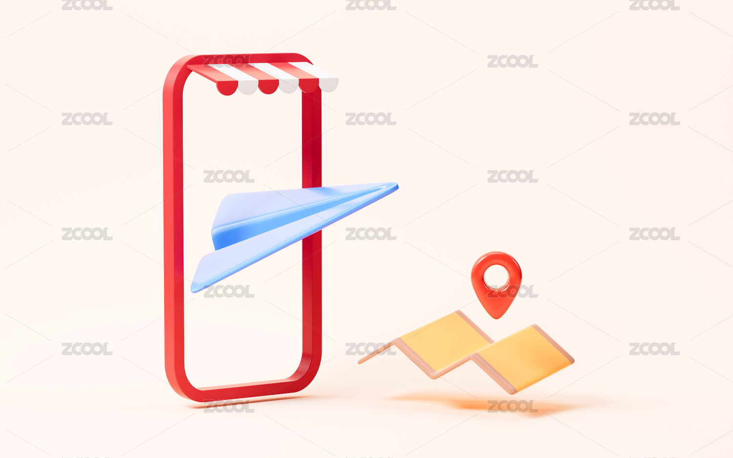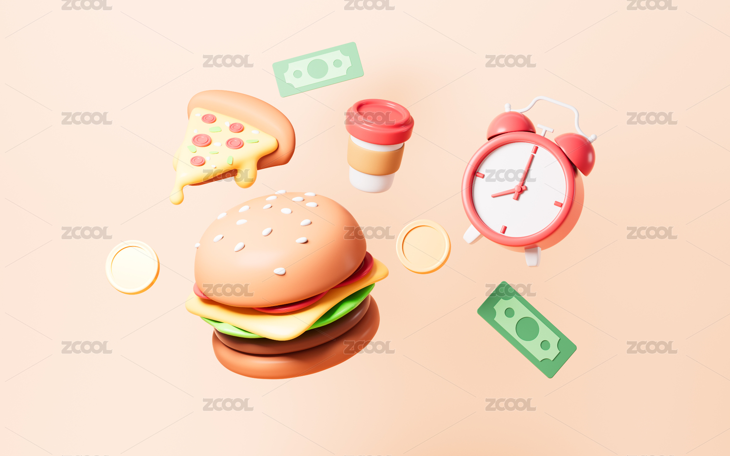 卡通外賣準時送達概念圖3D渲染
