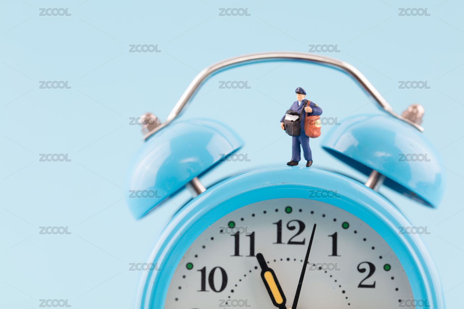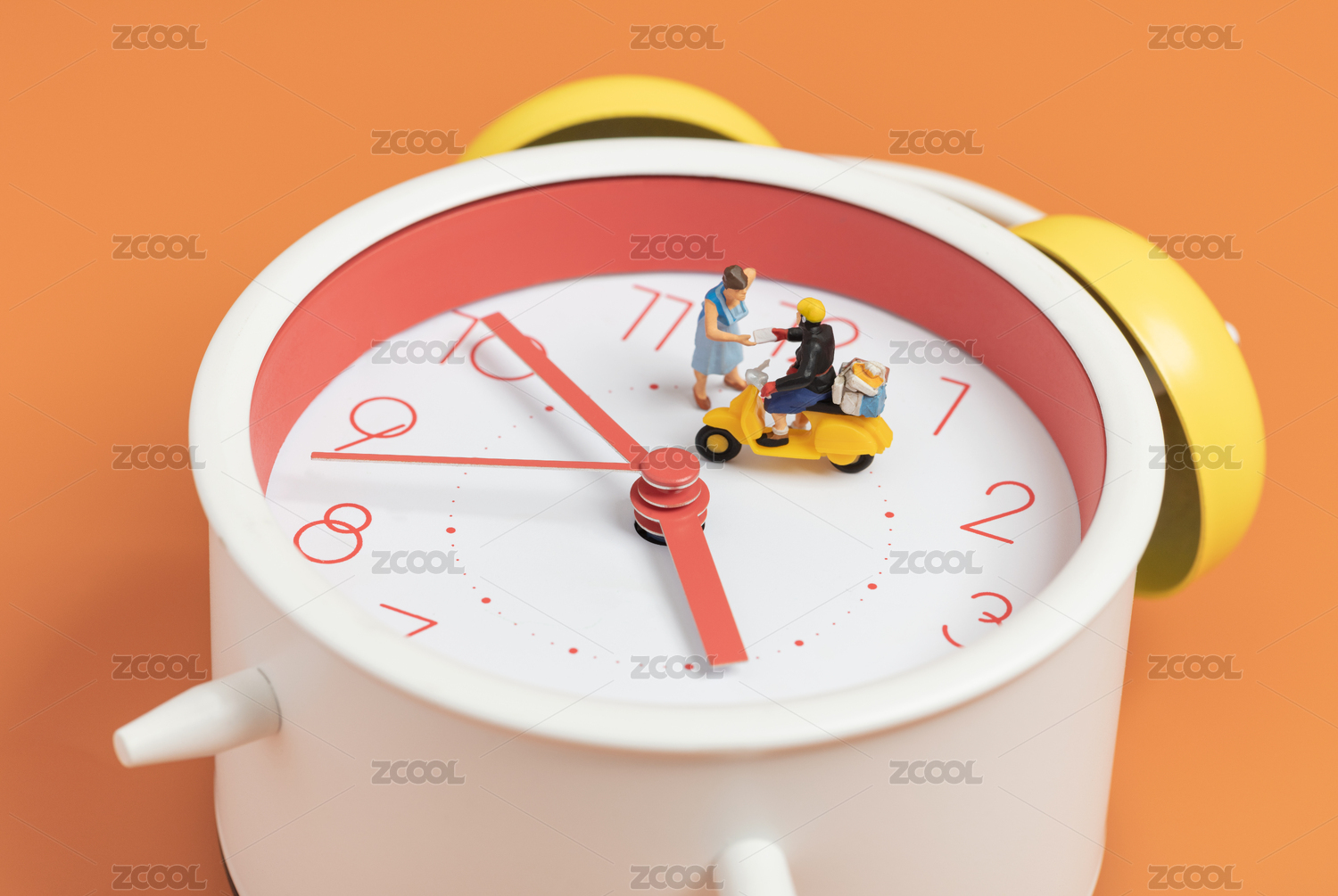 微縮創(chuàng)意鬧鐘上的快遞員正在派件中