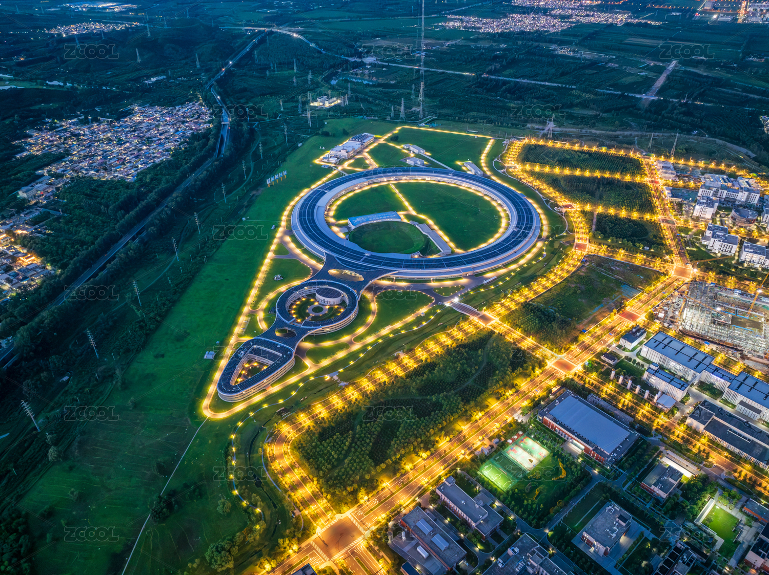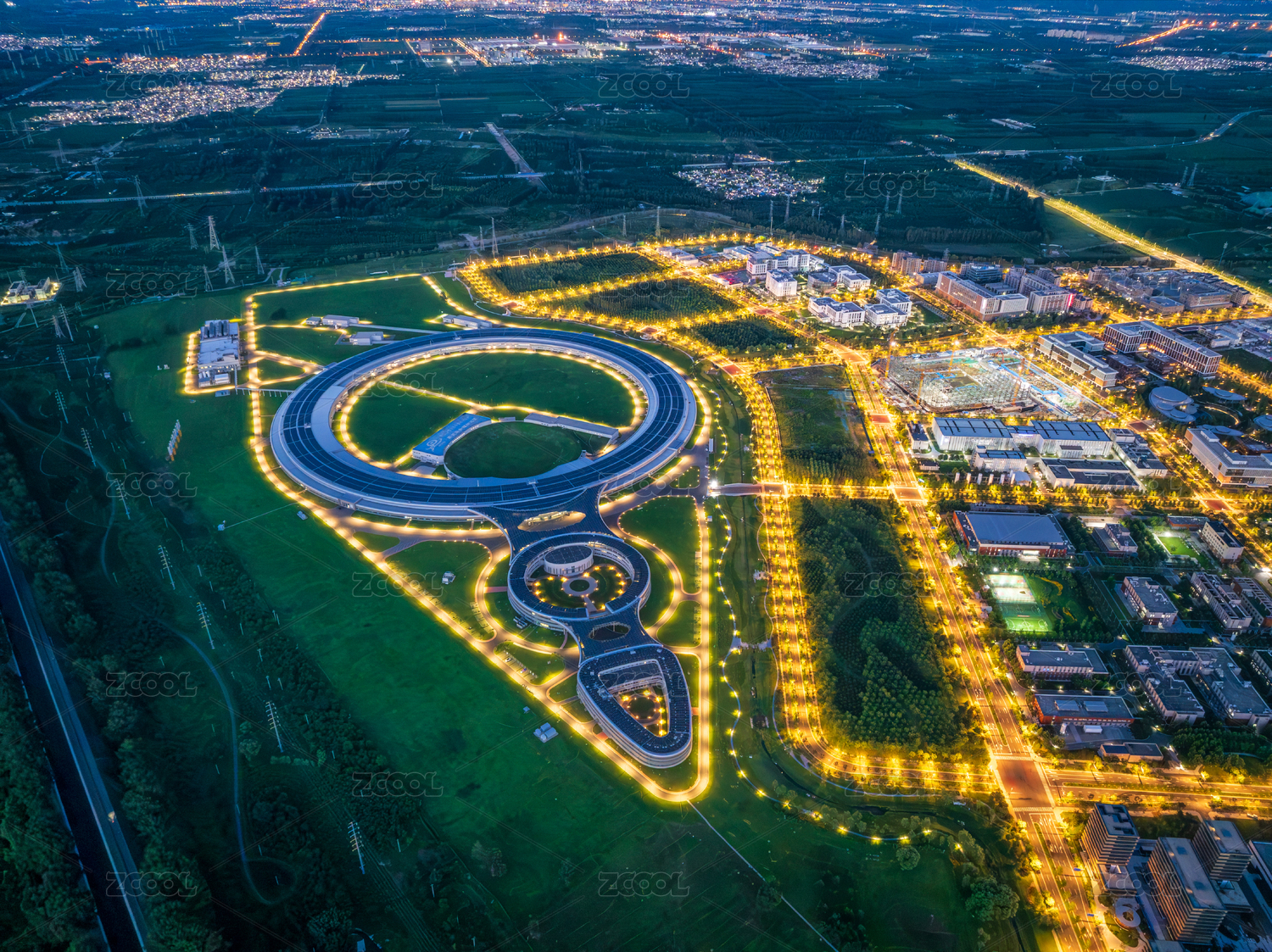 北京懷柔科學(xué)城高能同步輻射光源夜景