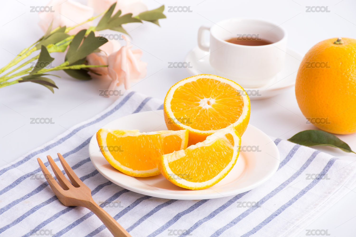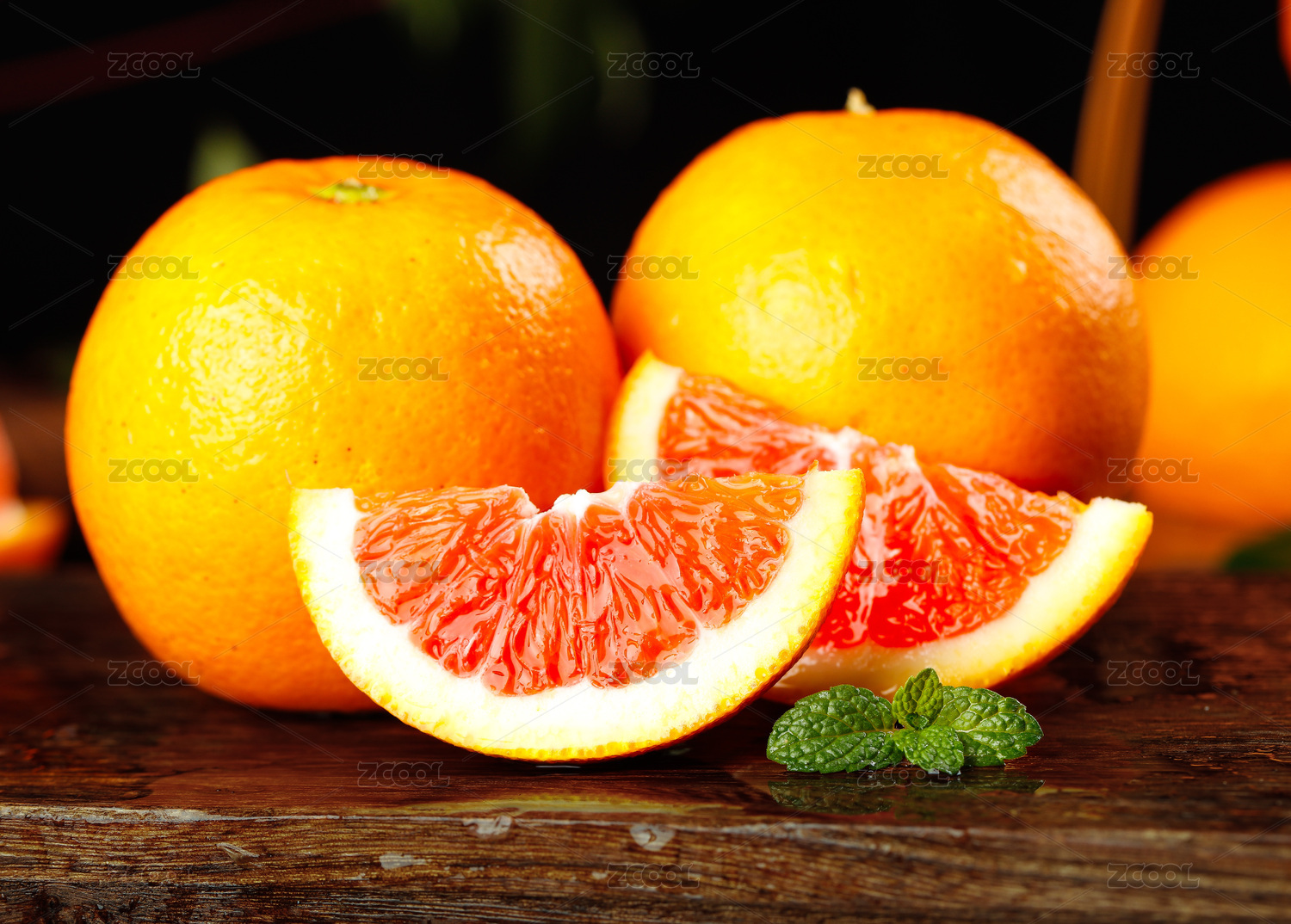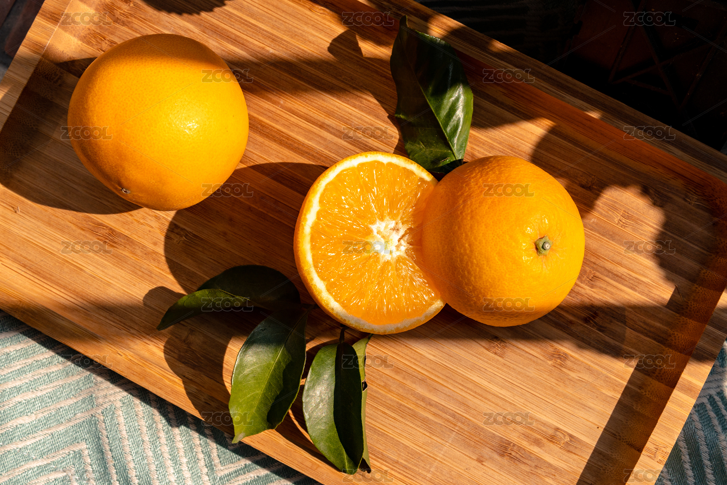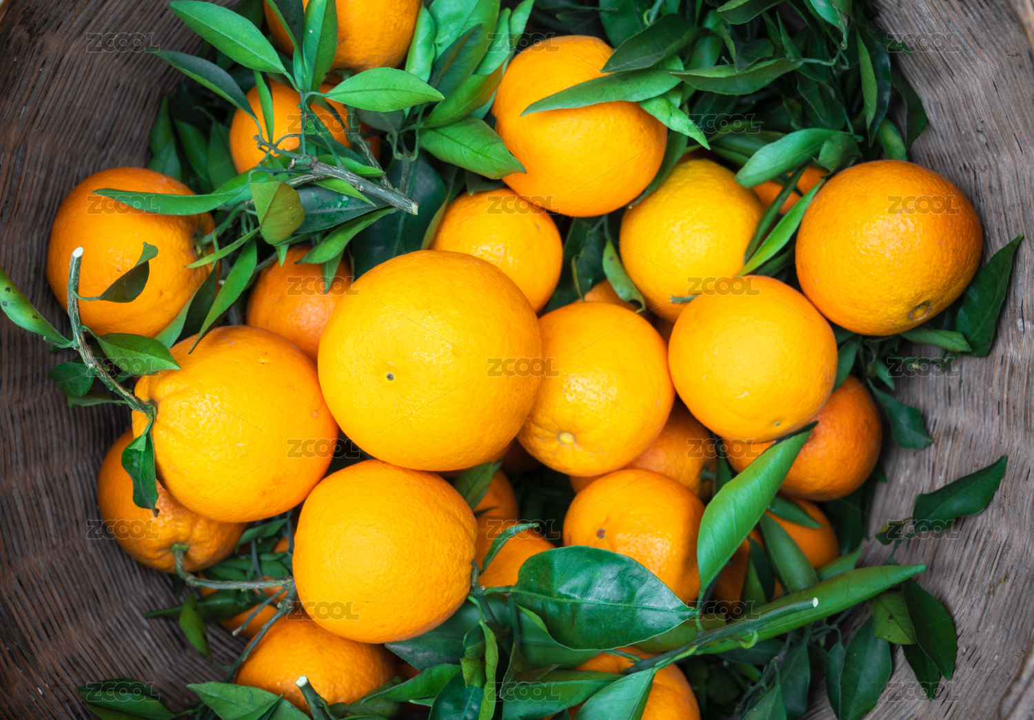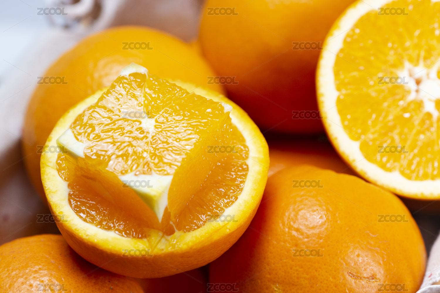 木桌上放在竹筐里的多個(gè)切開的雷波臍橙