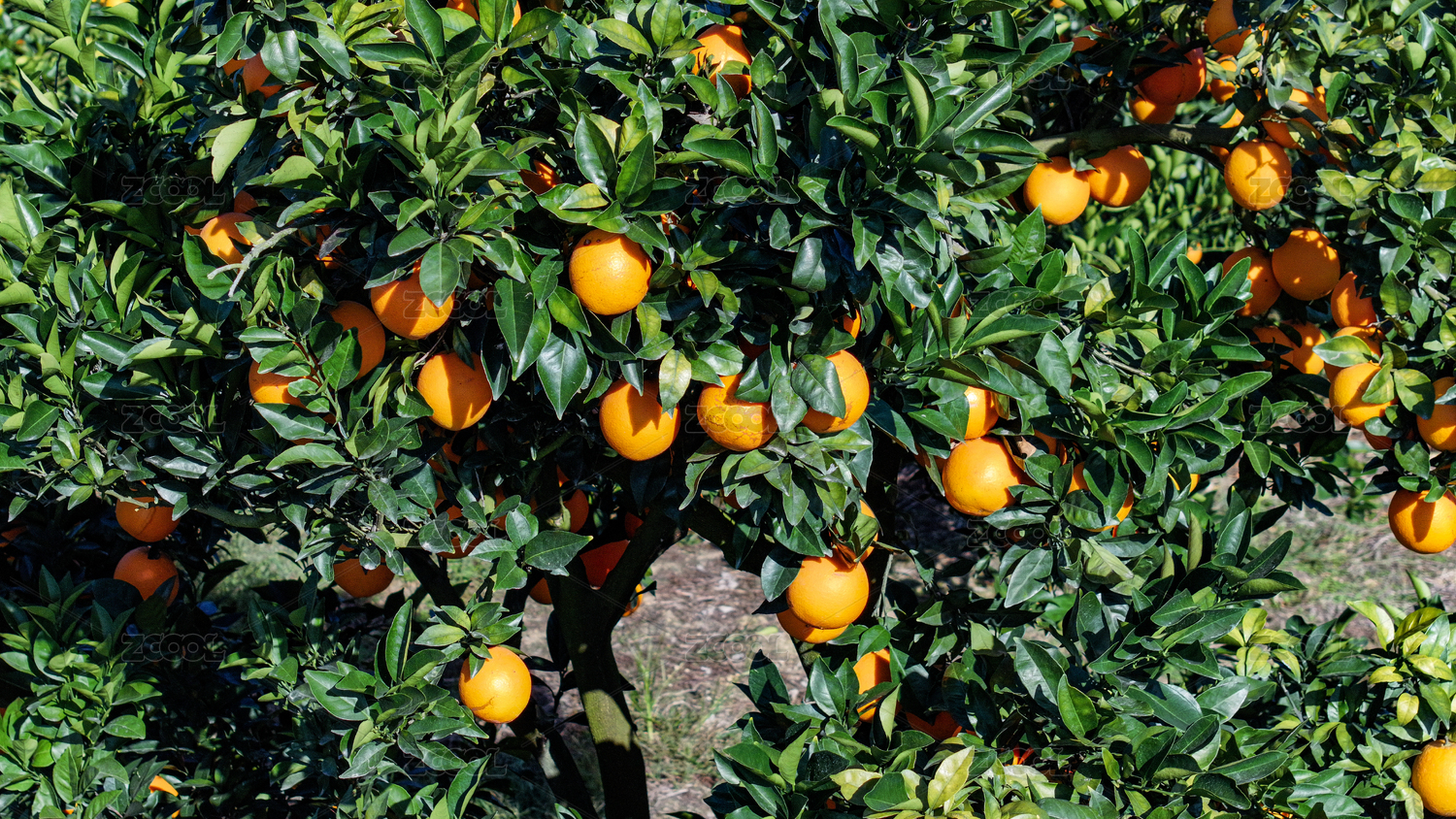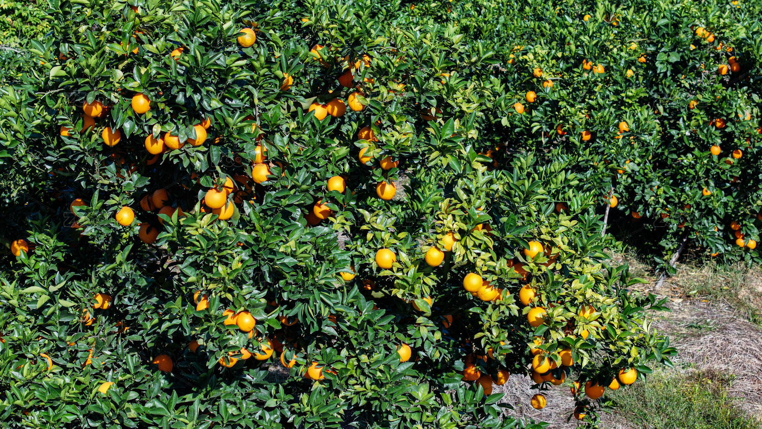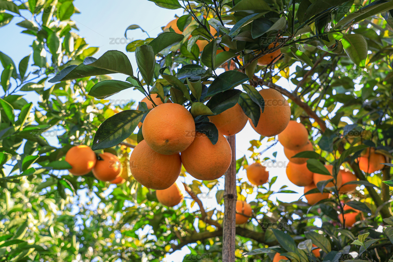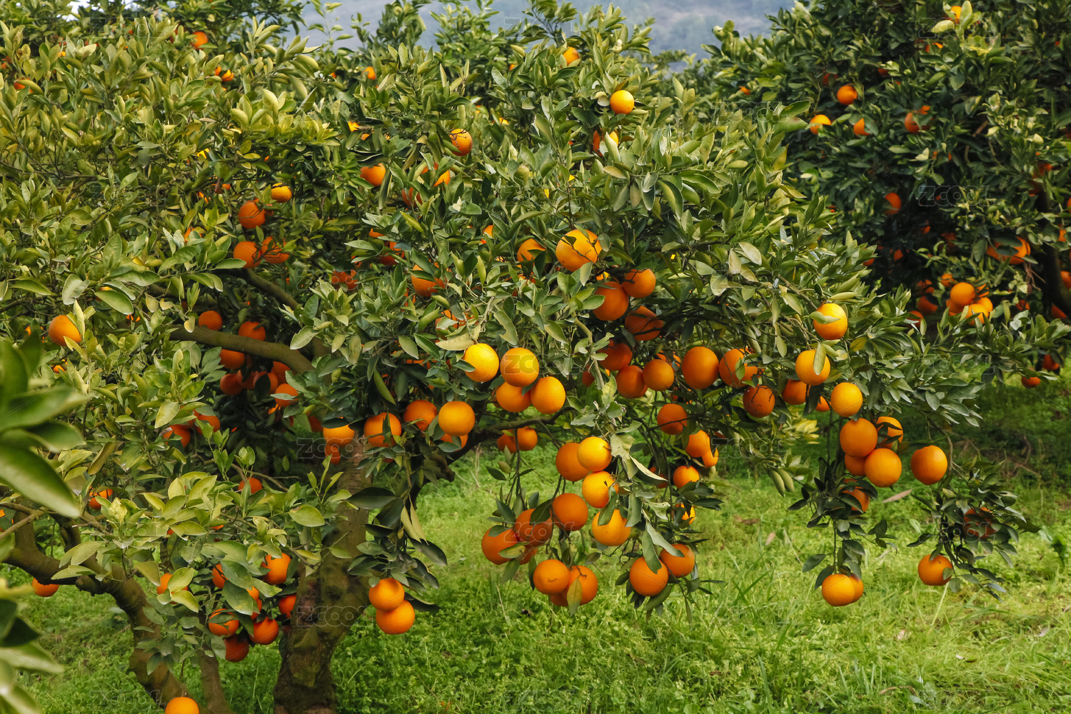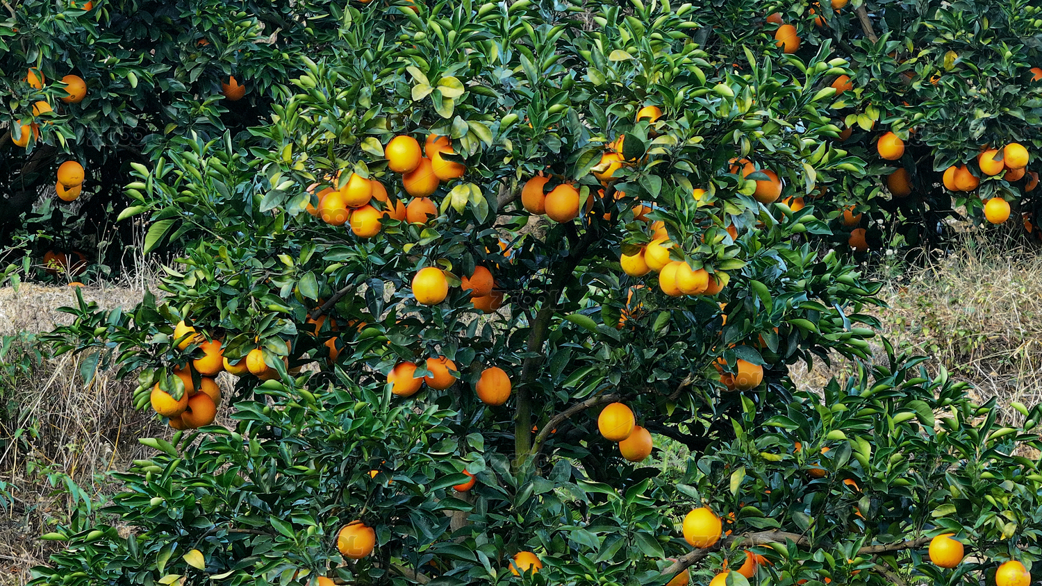 木桌上放在竹筐里的多個(gè)切開的雷波臍橙