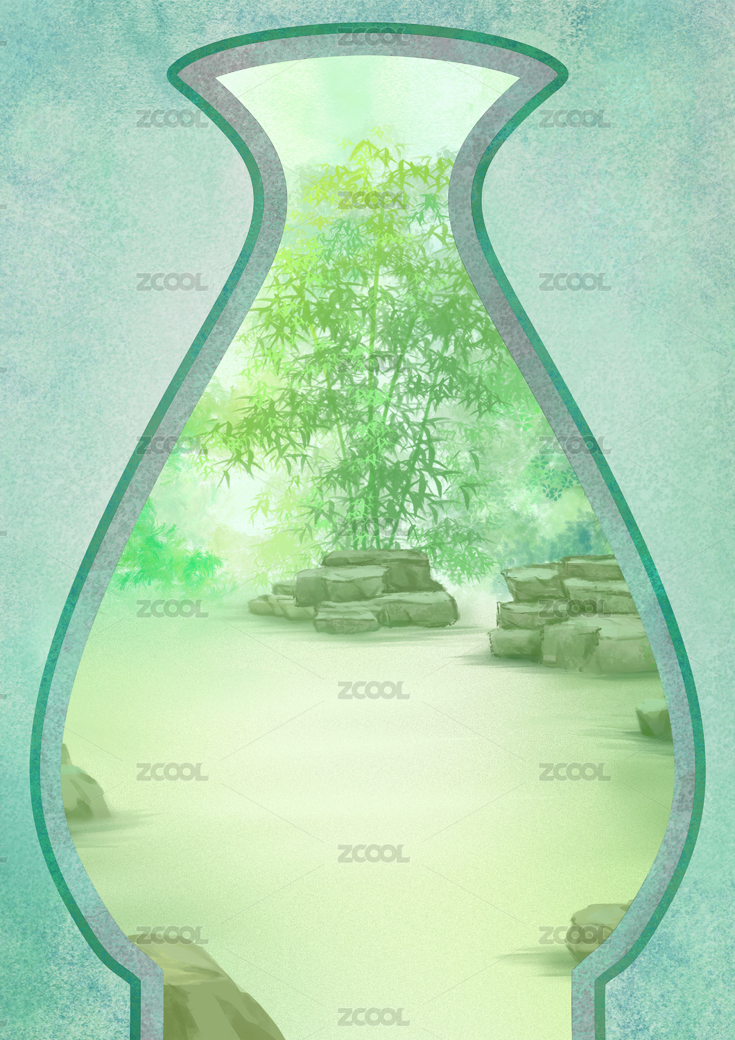 中式復(fù)古傳統(tǒng)建筑門(mén)洞月洞石頭竹子水面河邊