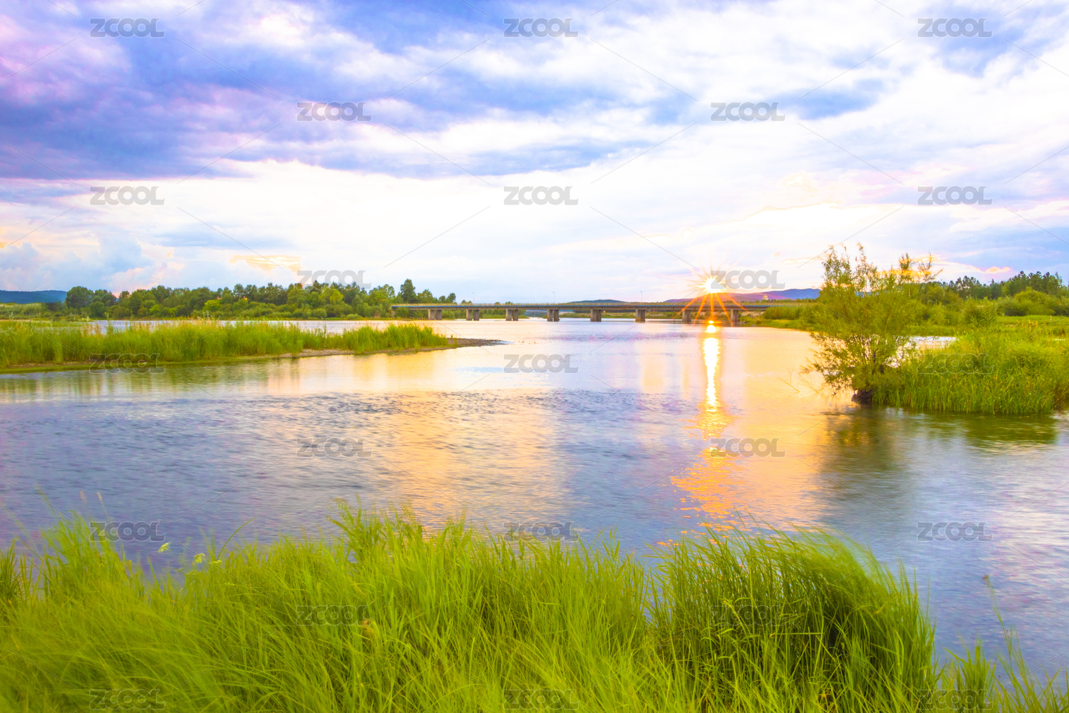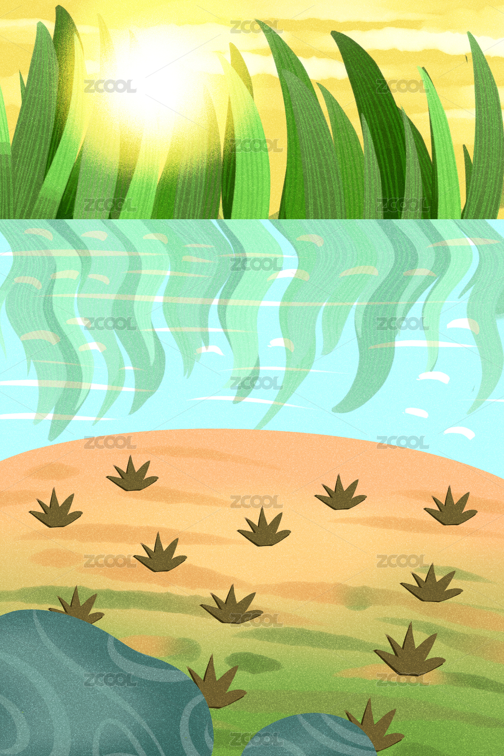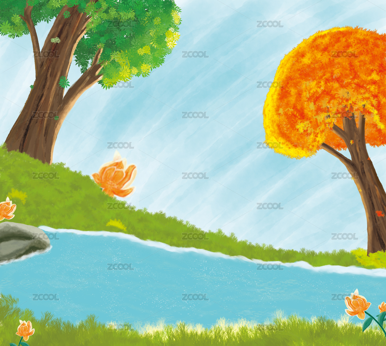 小清新風(fēng)格戶(hù)外河邊插畫(huà)背景