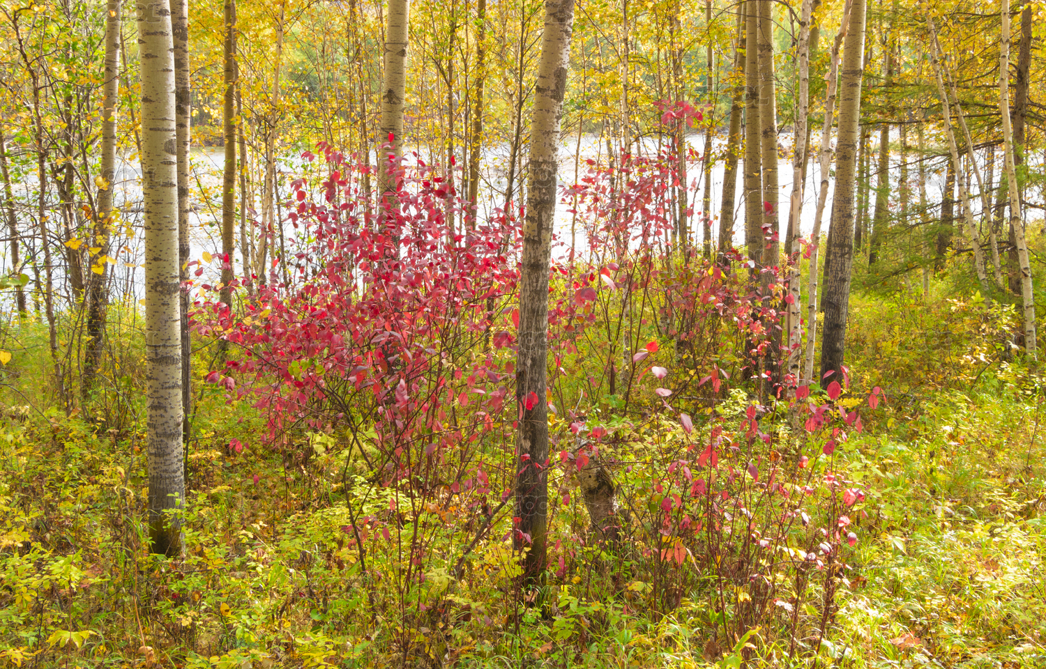 中國(guó)大興安嶺河邊樹(shù)林中的紅葉