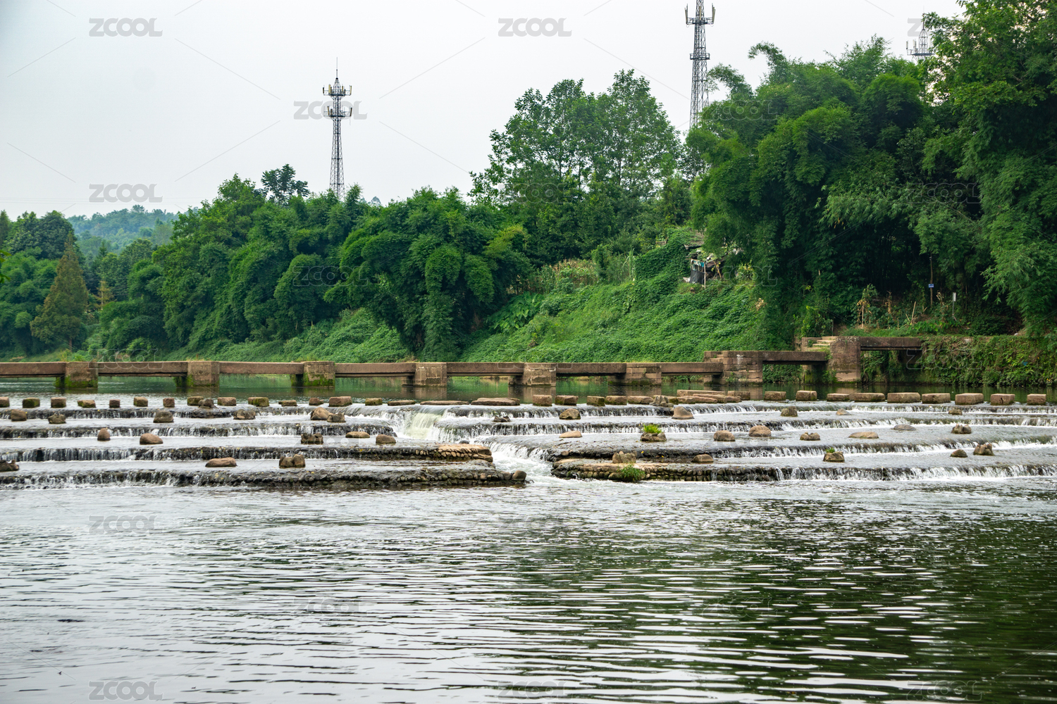 中國(guó)成都邛崍夏日河邊石橋與竹林