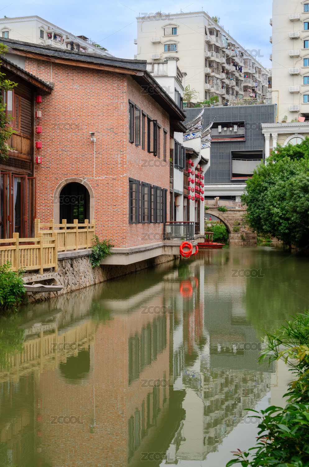 福州上下杭景區(qū)河邊中式建筑與現(xiàn)代建筑景觀