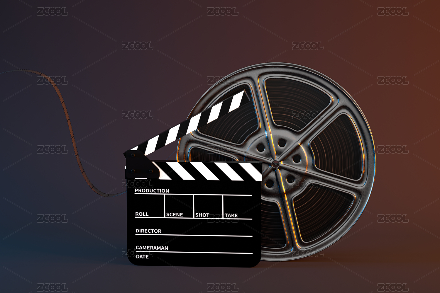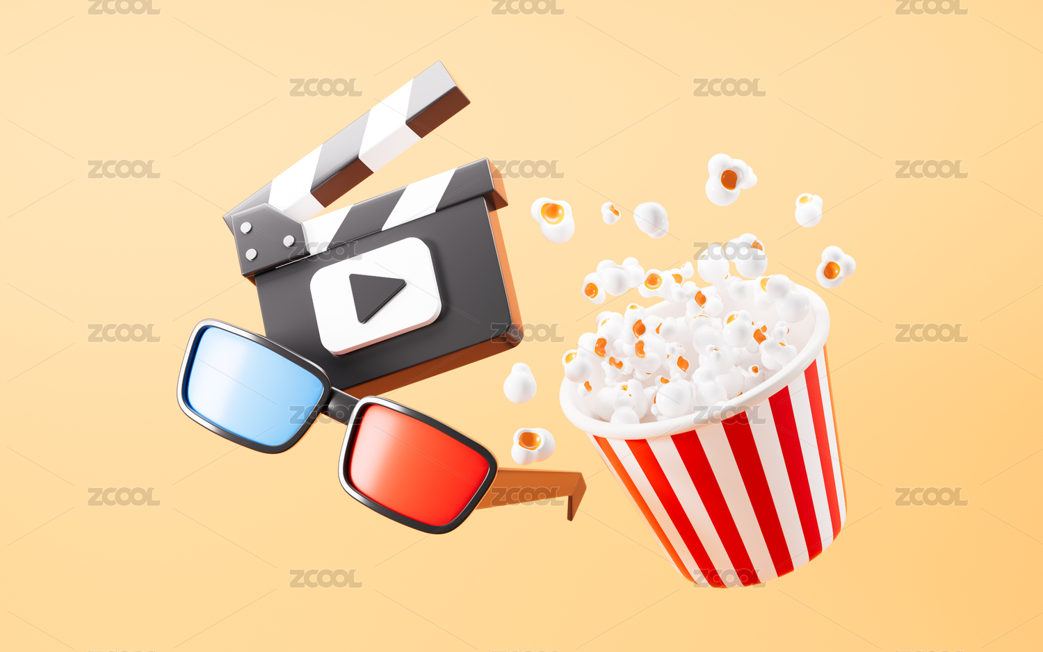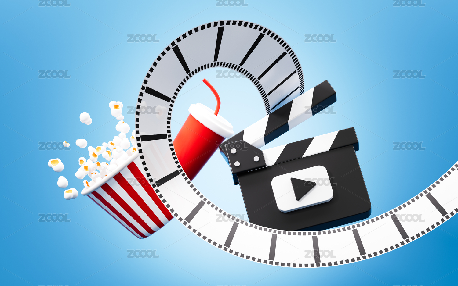 卡通電影膠卷場記板爆米花零食飲料3D渲染