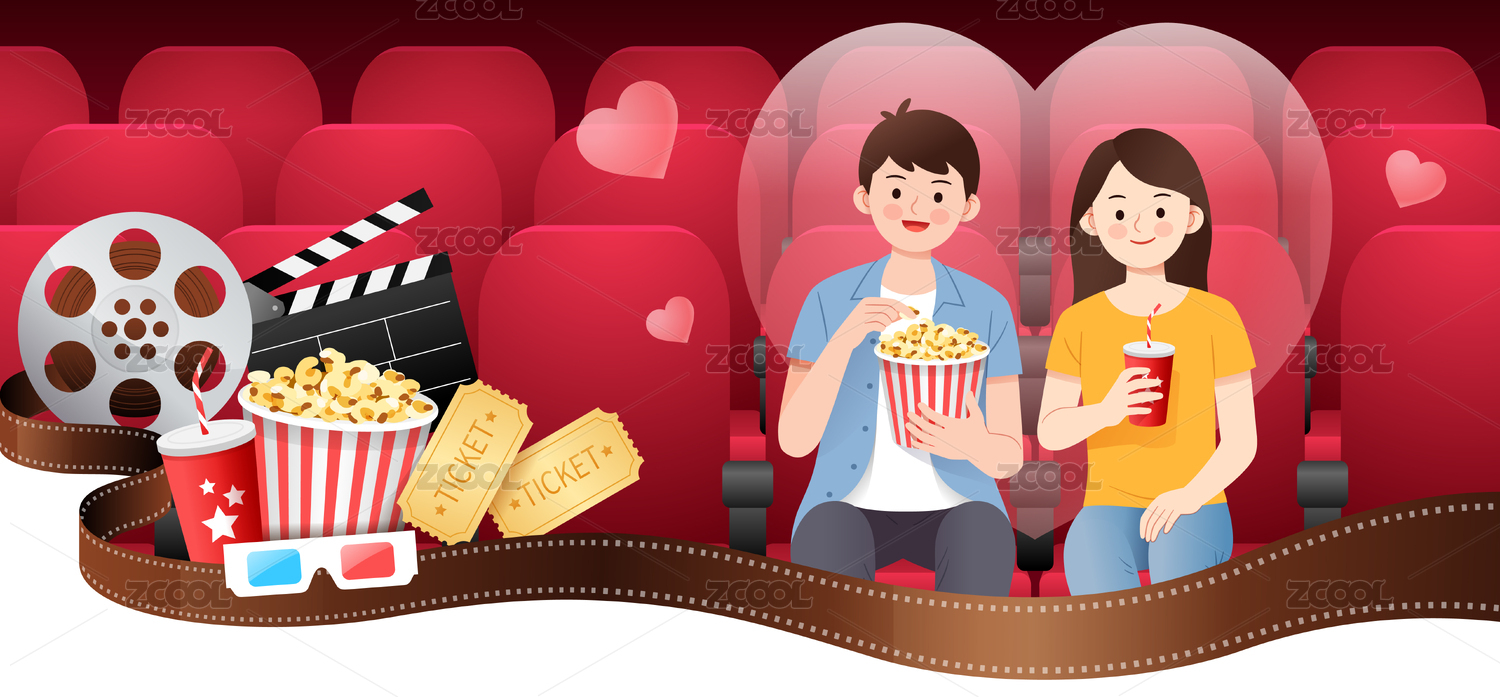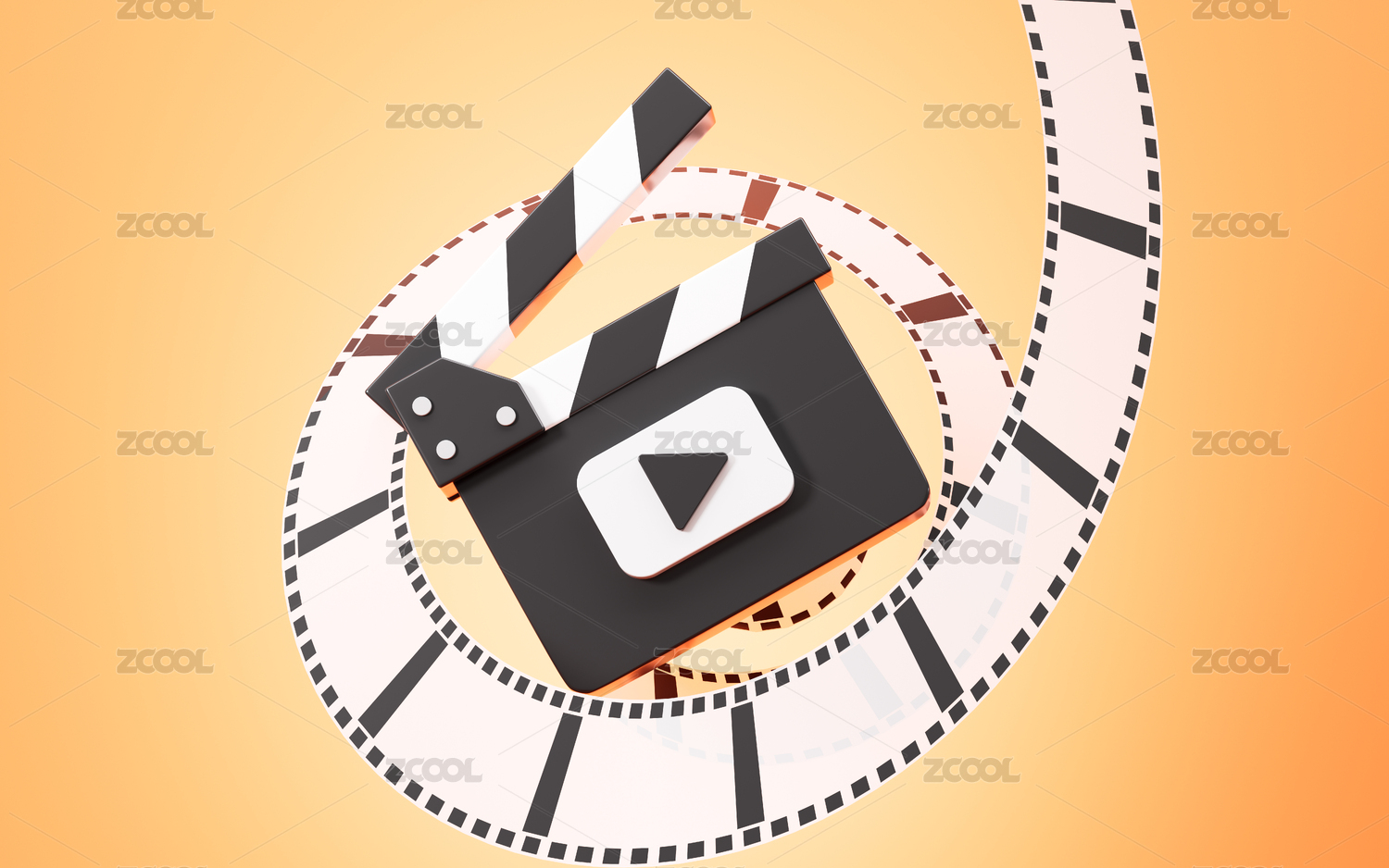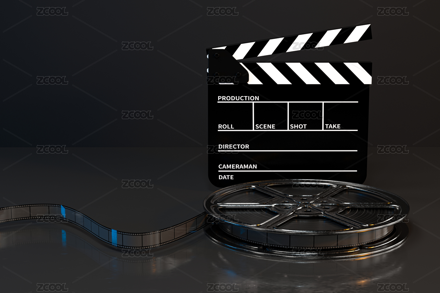 卡通電影膠卷場記板爆米花零食飲料3D渲染