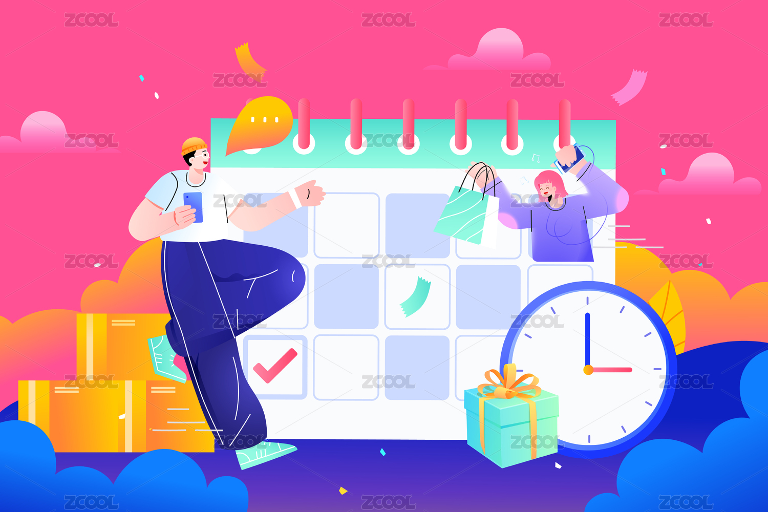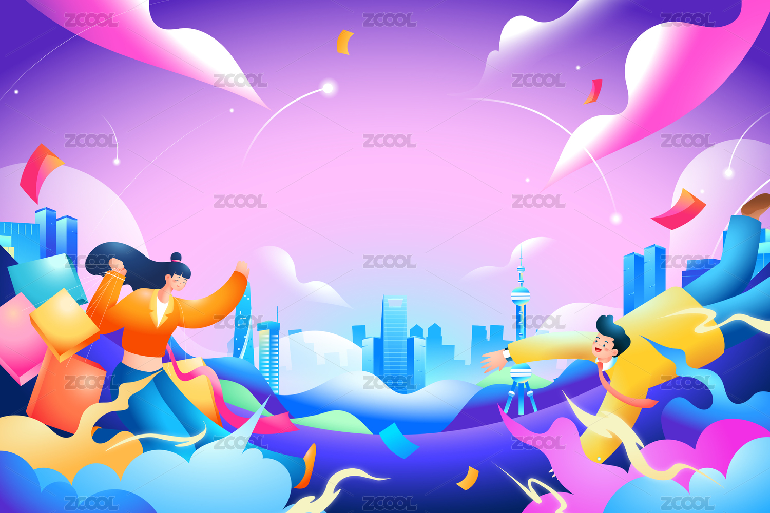消費券電商出行矢量插畫