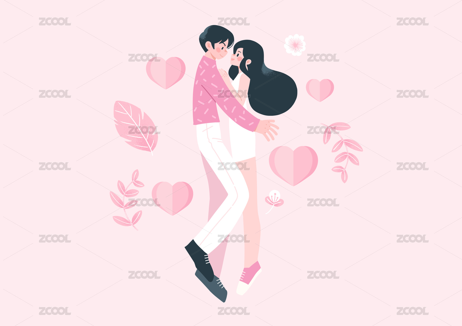 情人節(jié)帥帥的男孩擁抱漂亮的女孩