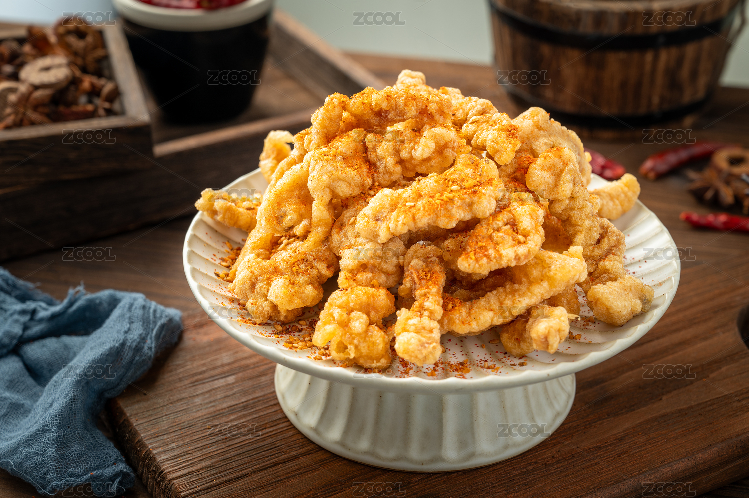 木紋桌上的一碟小酥肉