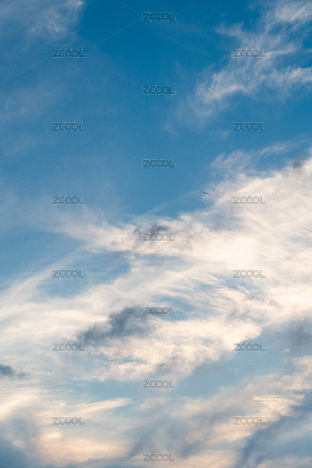 晴朗天空下 藍(lán)天中松散拉絲的白云