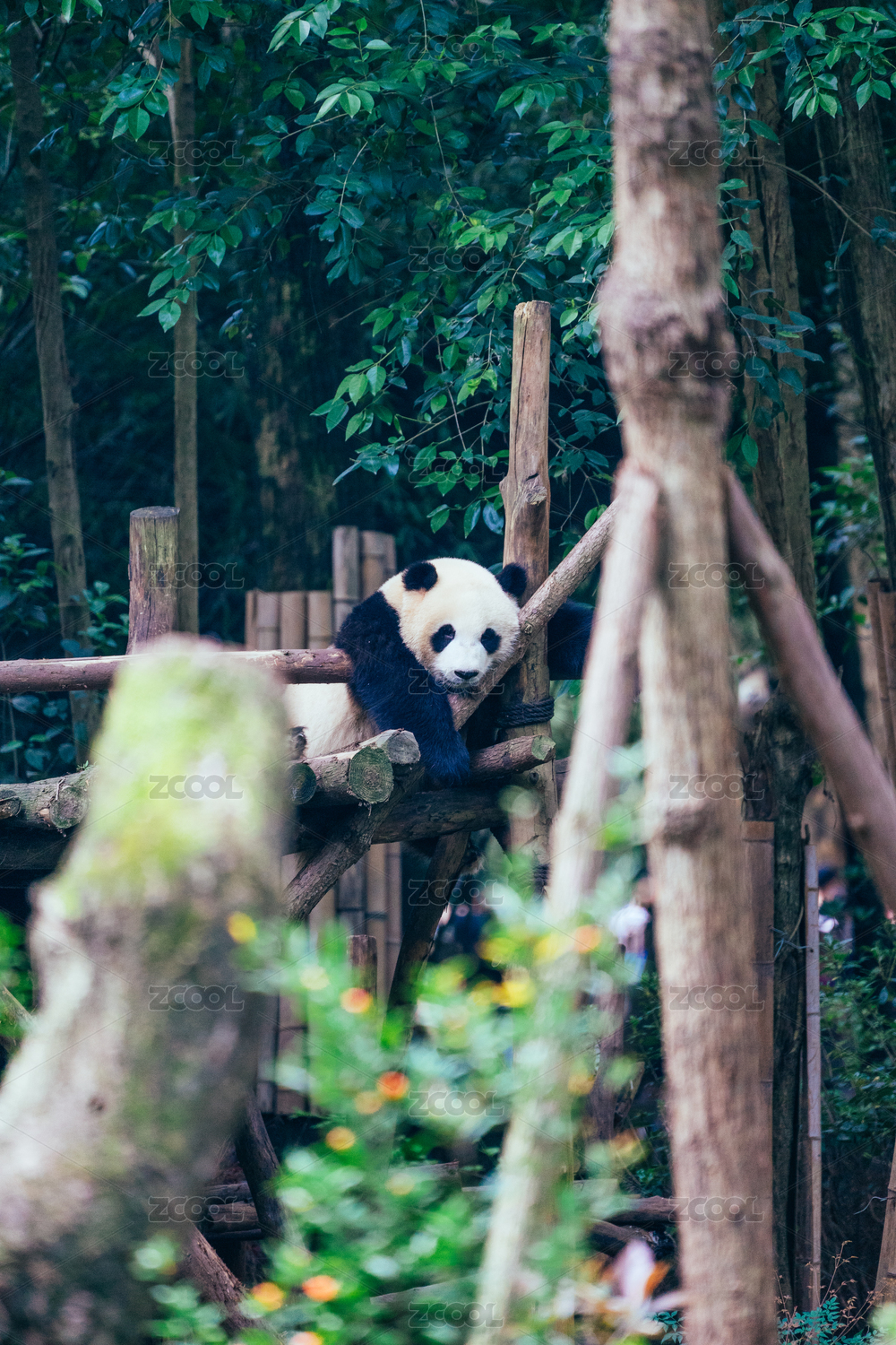 坐在樹上遠(yuǎn)望的可愛大熊貓?zhí)貙?/div>
