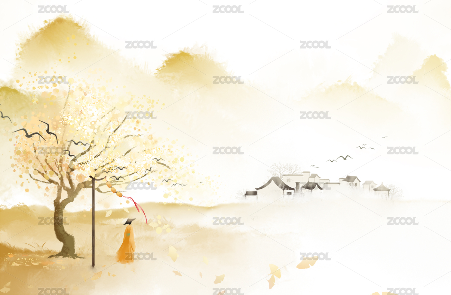 重陽(yáng)登高踏秋遠(yuǎn)望的寫意山水畫
