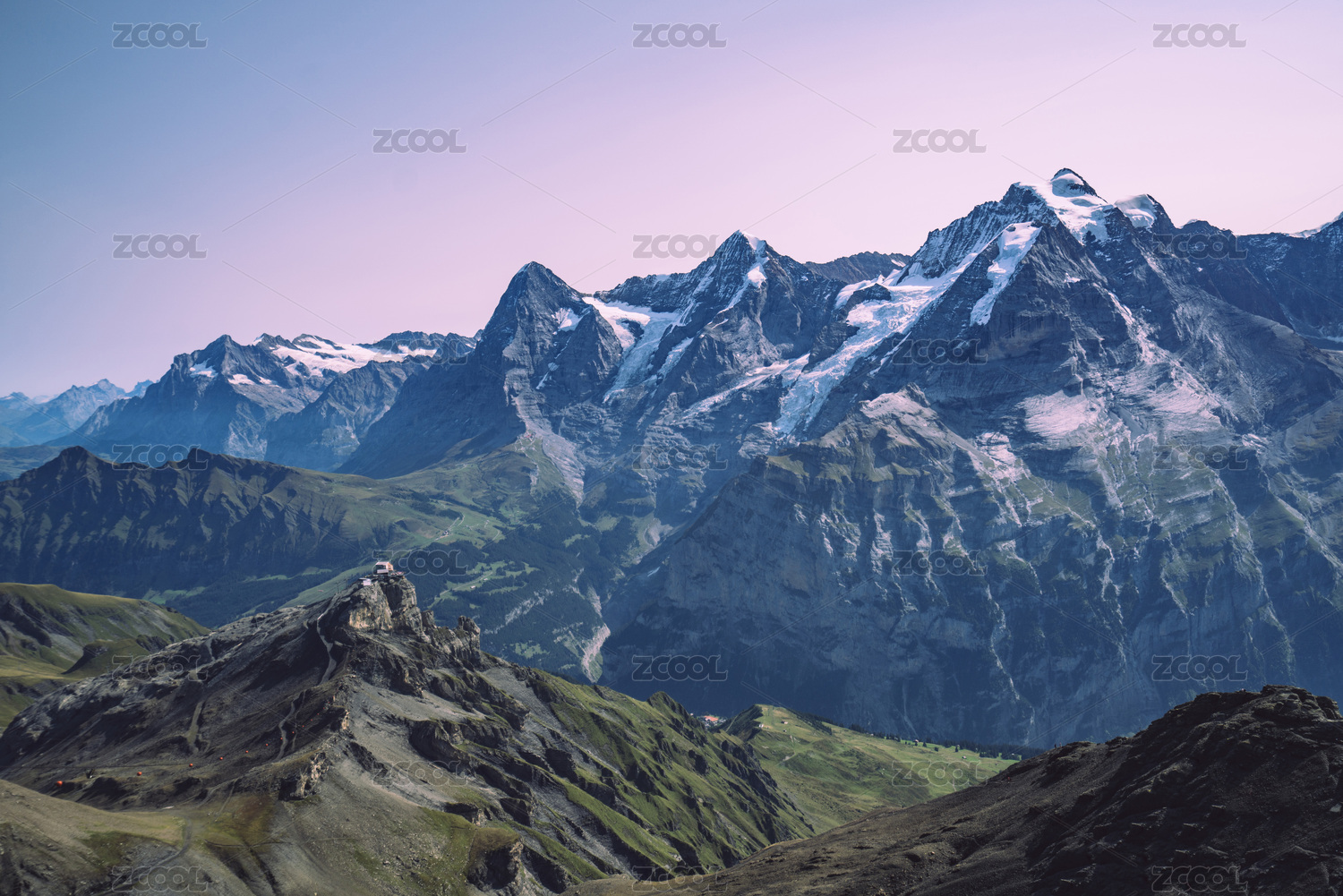 遠(yuǎn)望西歐瑞士阿爾卑斯山少女峰雪山