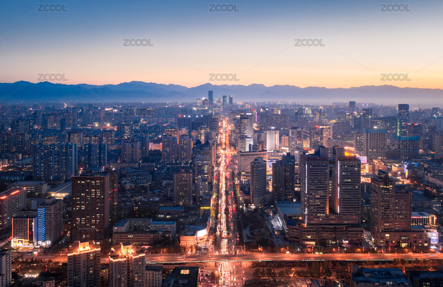 西安市遠(yuǎn)望高新區(qū)建筑群及背后的秦嶺