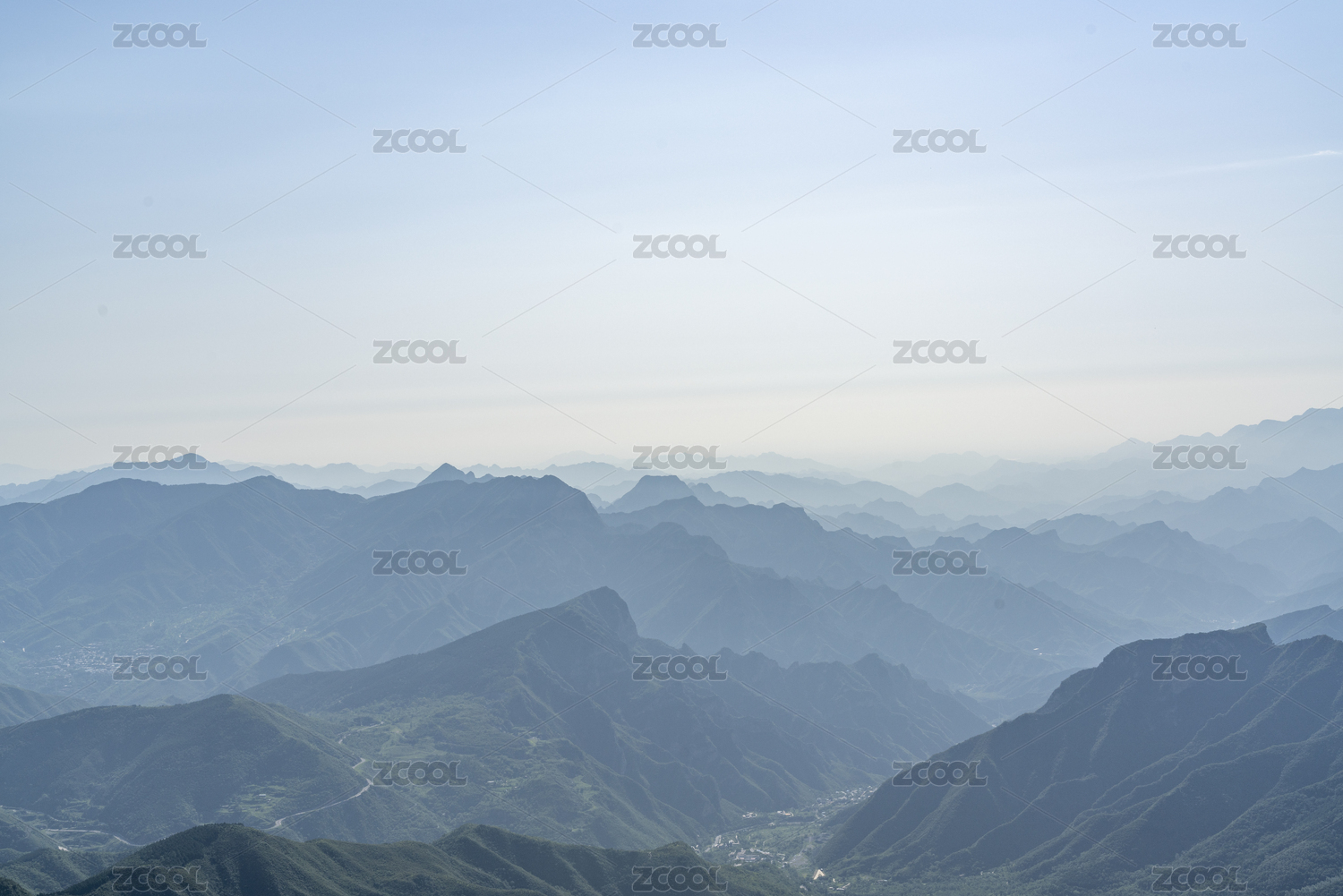 夏天百花山山頂遠(yuǎn)望起伏的山巒