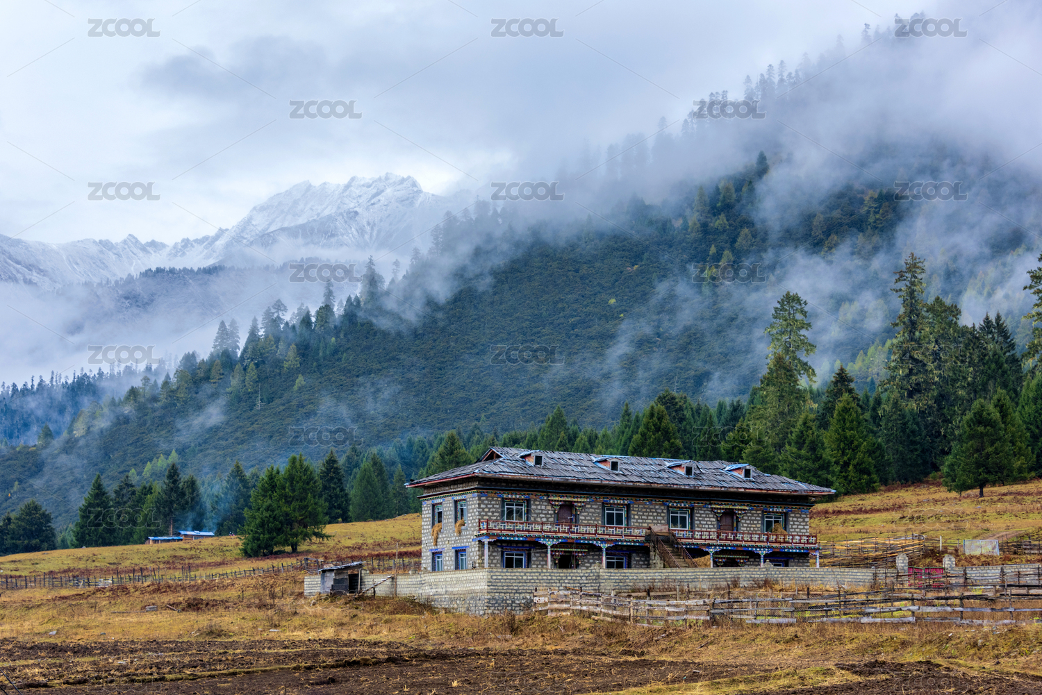中國(guó)西藏林芝魯朗扎西崗村遠(yuǎn)望加拉白壘雪山