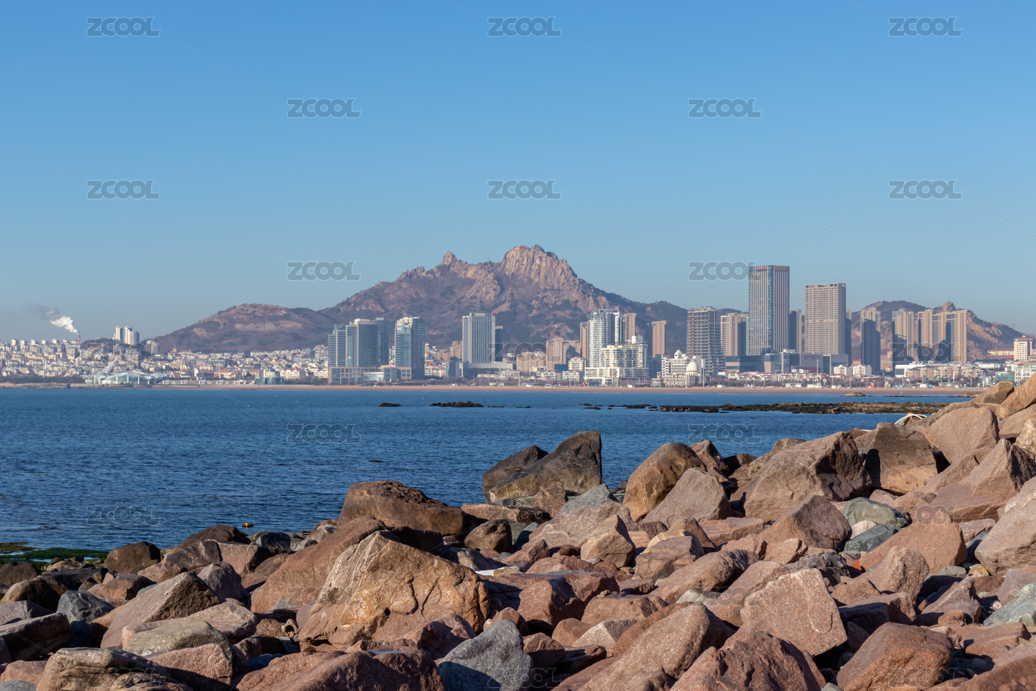 從石老人遠(yuǎn)望中國(guó)山東青島市區(qū)