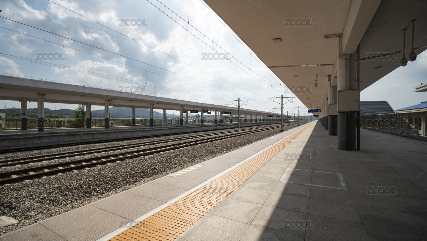 高鐵動(dòng)車站站臺(tái)空曠無人場(chǎng)景