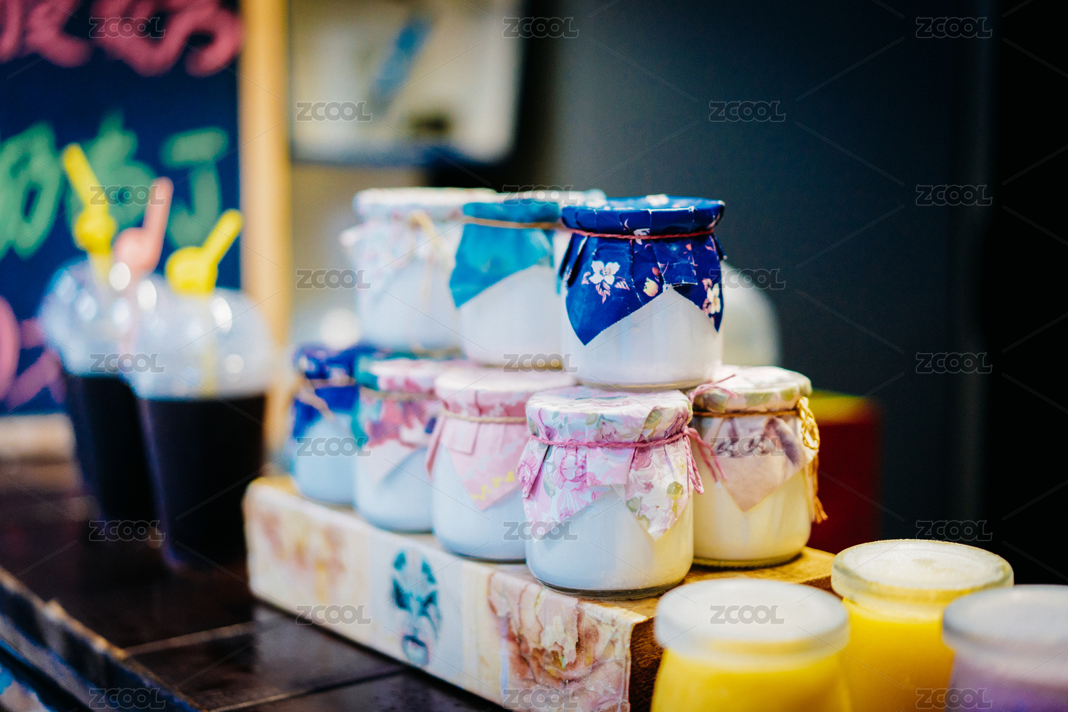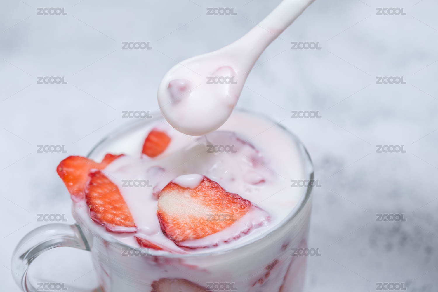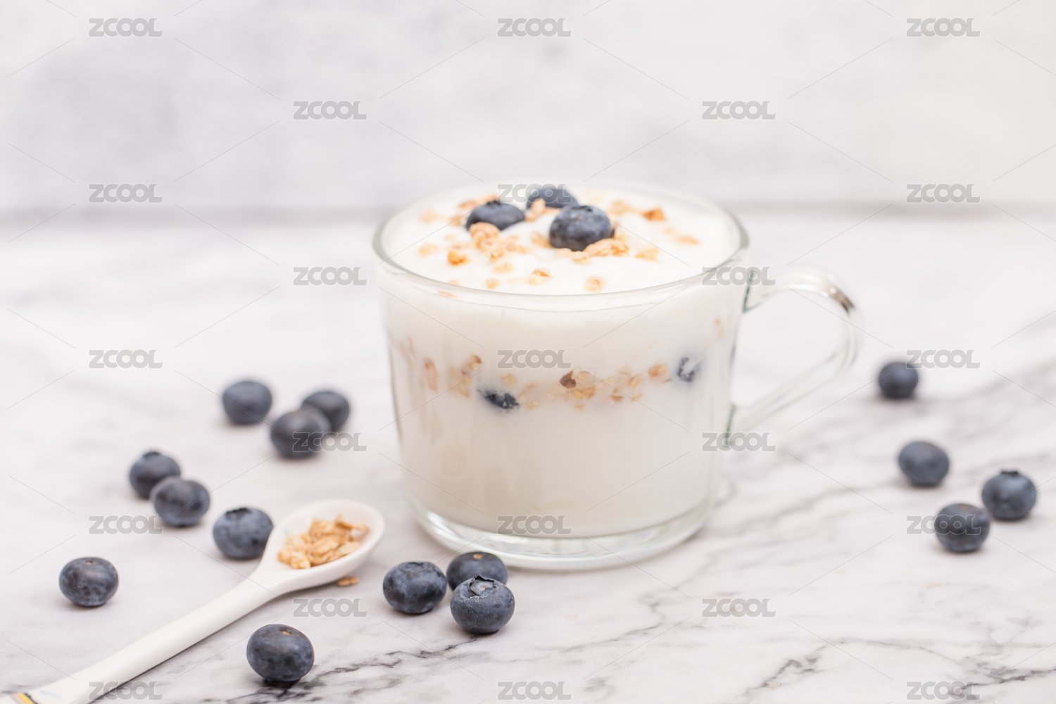 勺盛酸奶特寫藍(lán)色莫蘭迪色系背景