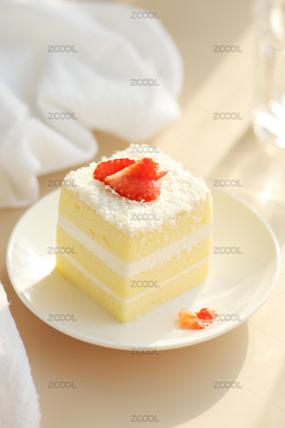 用草莓裝飾的方形酸奶慕斯蛋糕