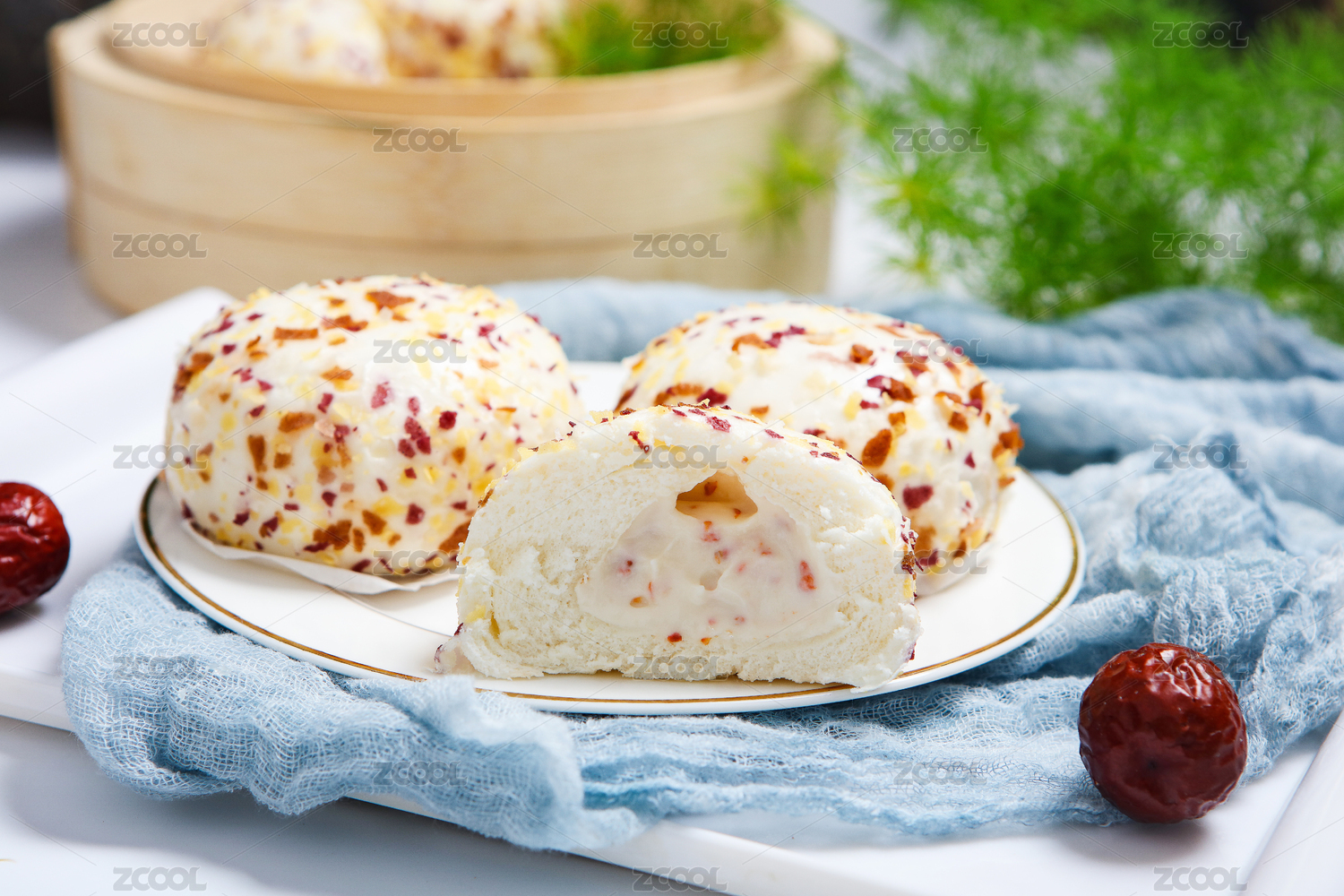 裝在碟子里的面點(diǎn)小吃燕麥酸奶包子