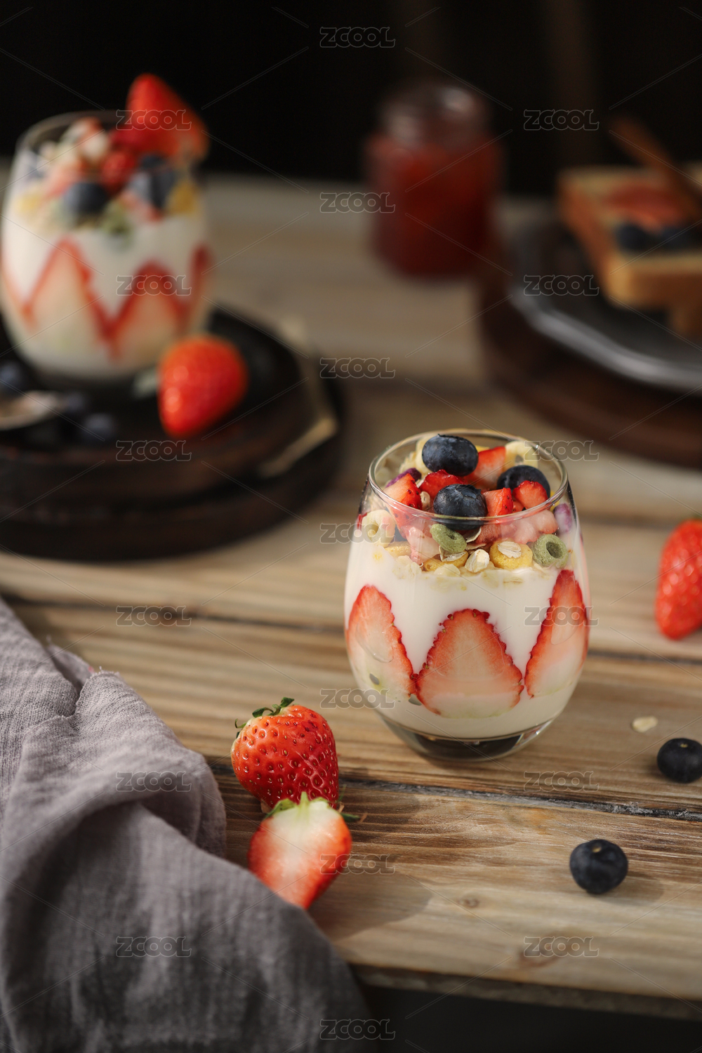 草莓藍(lán)莓燕麥酸奶面包早餐