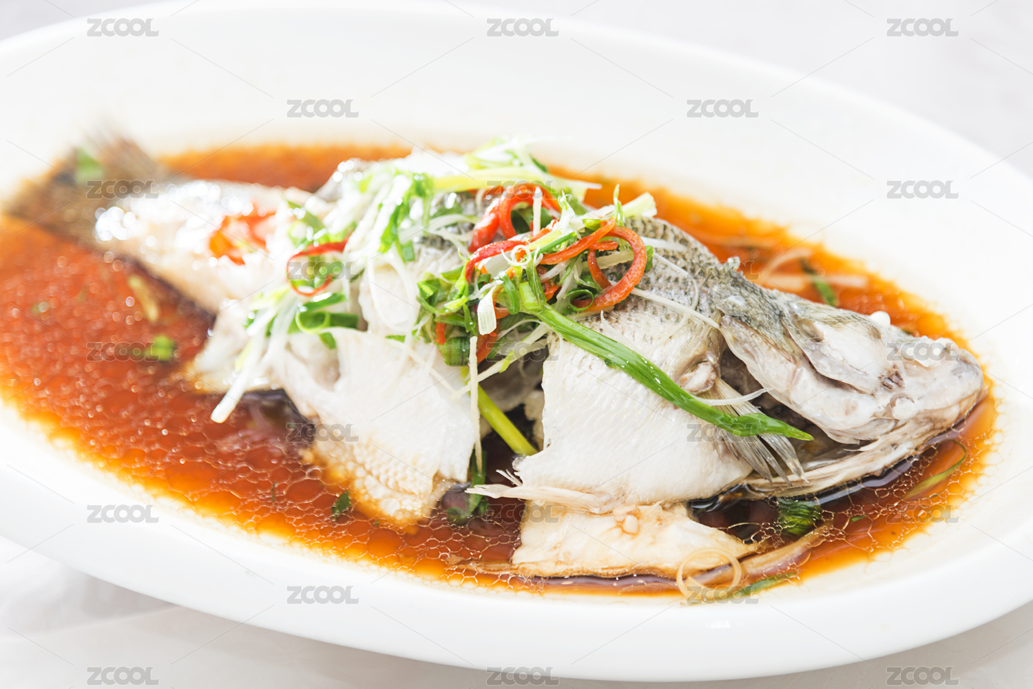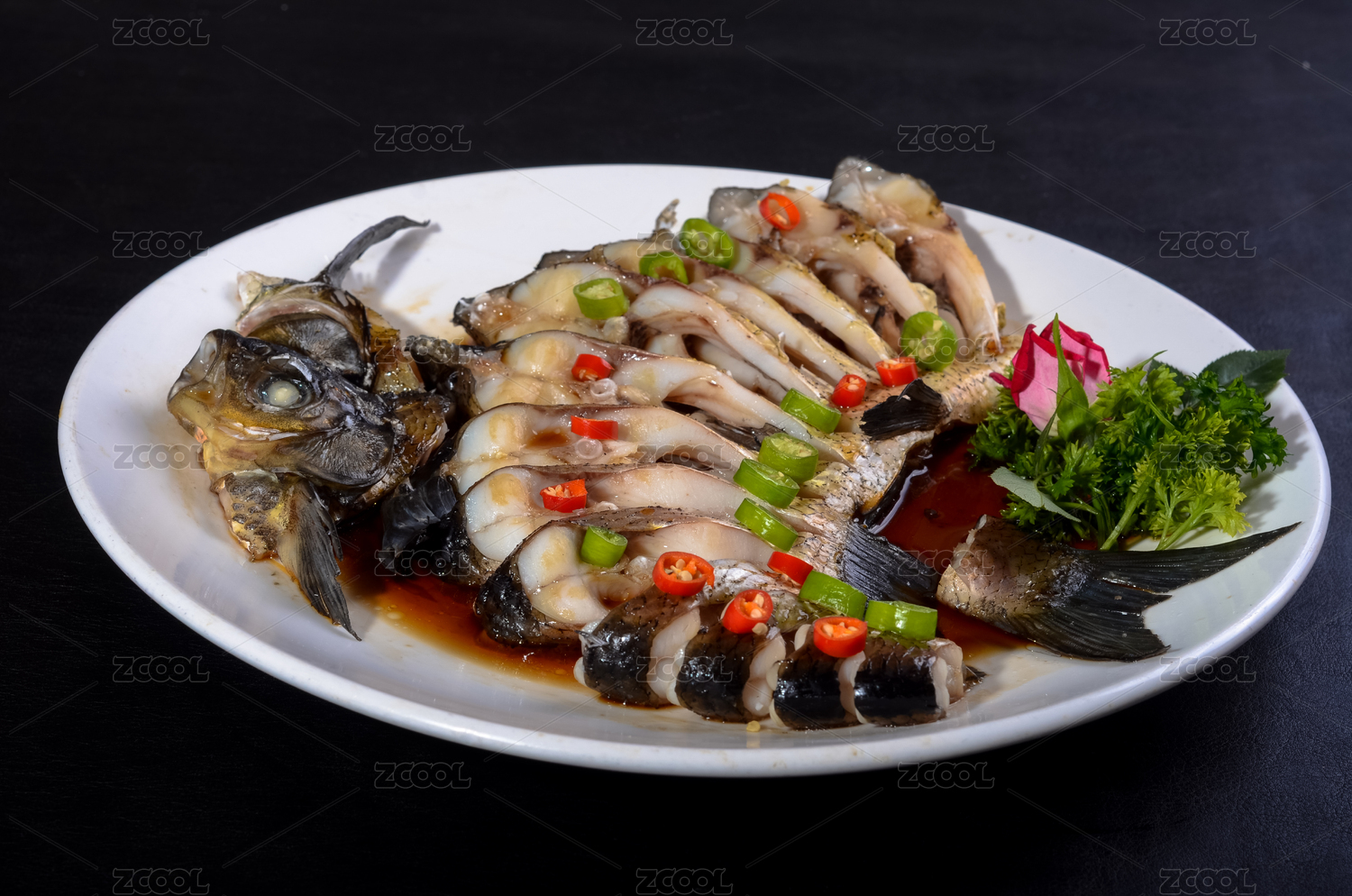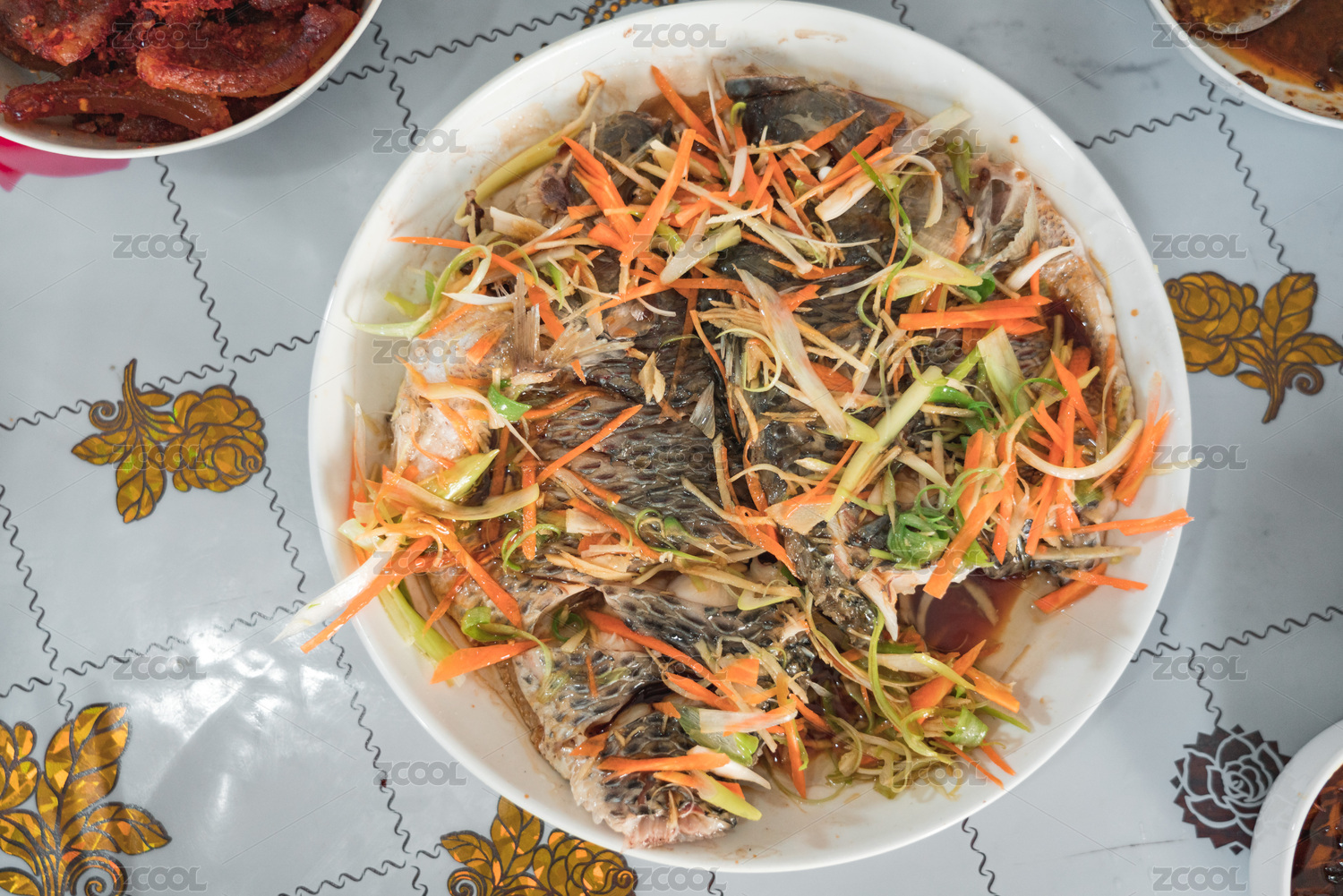 一盤中餐美食清蒸魚