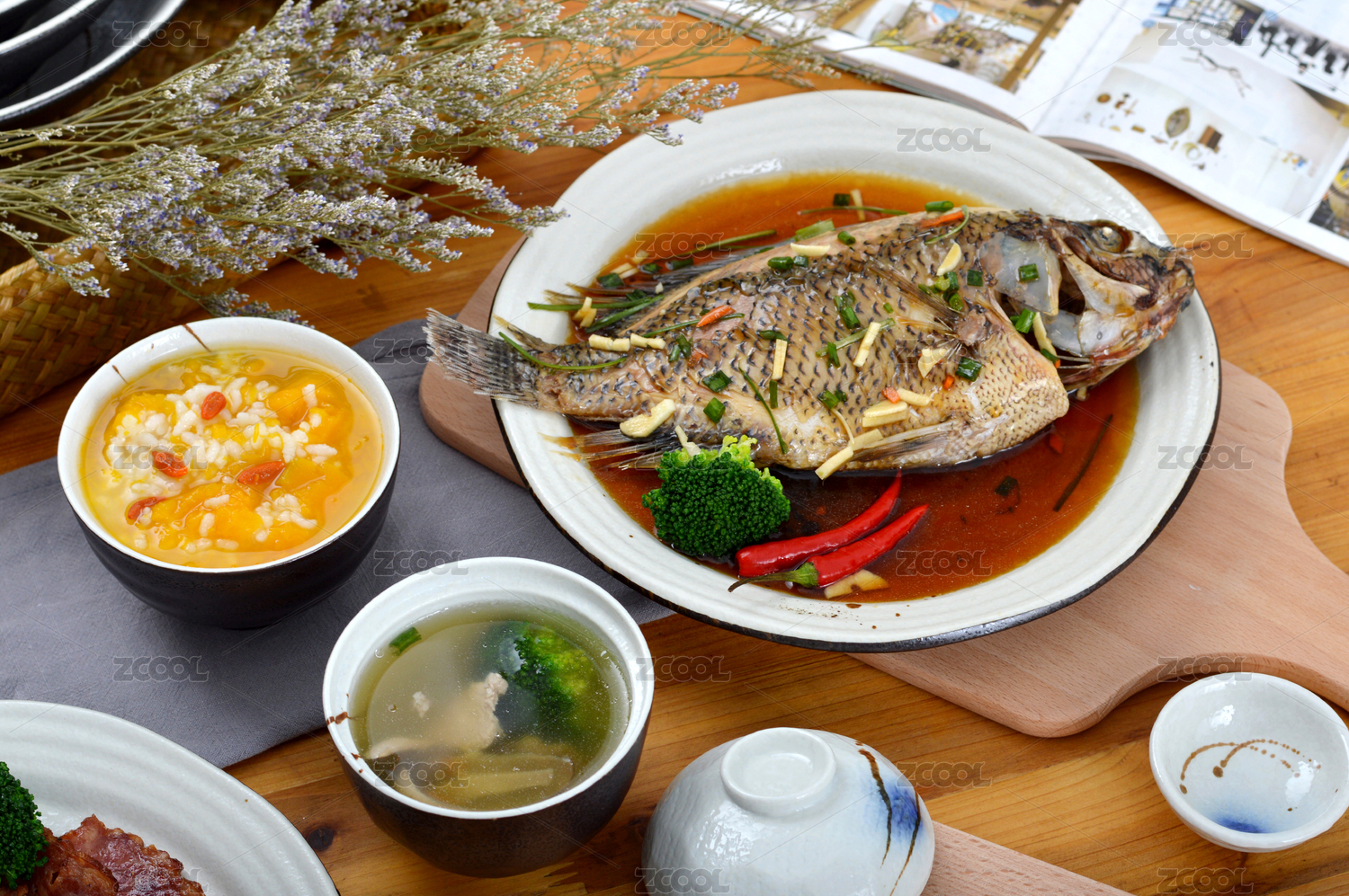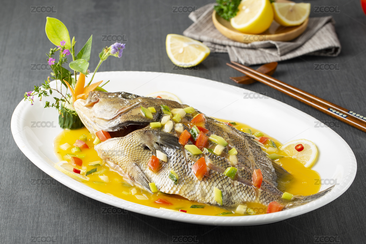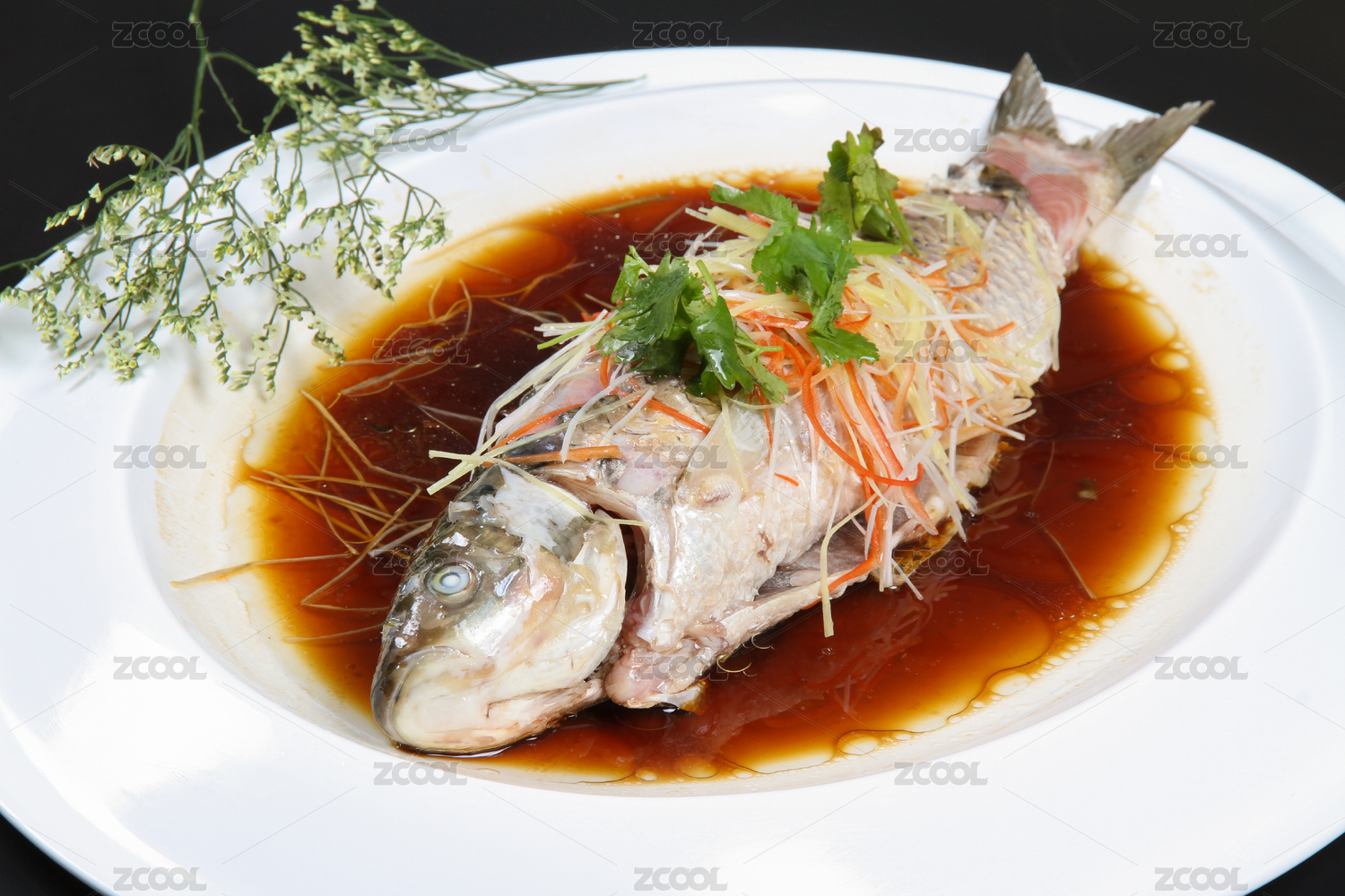 一盤中餐美食清蒸魚